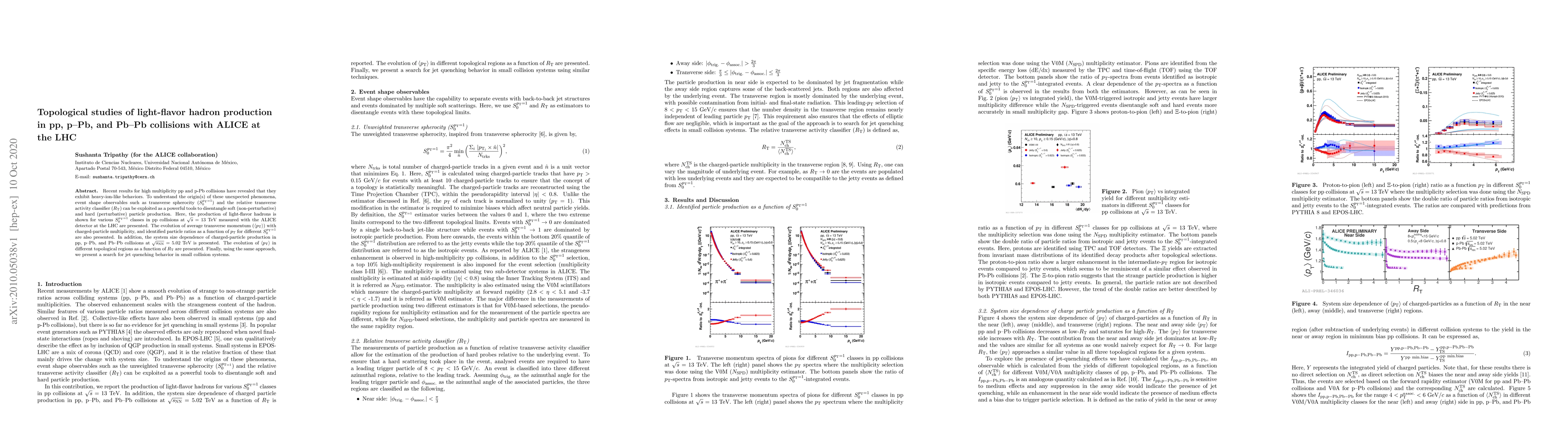 This paper investigates light-flavor hadron production in pp, p-Pb, and Pb-Pb collisions using ALICE at the LHC, revealing heavy-ion-like behaviors in high multiplicity pp and p-Pb collisions. The study employs event shape observables to analyze the interplay between soft and hard particle production, presenting results on the evolution of average transverse momentum and particle ratios across different topological regions.