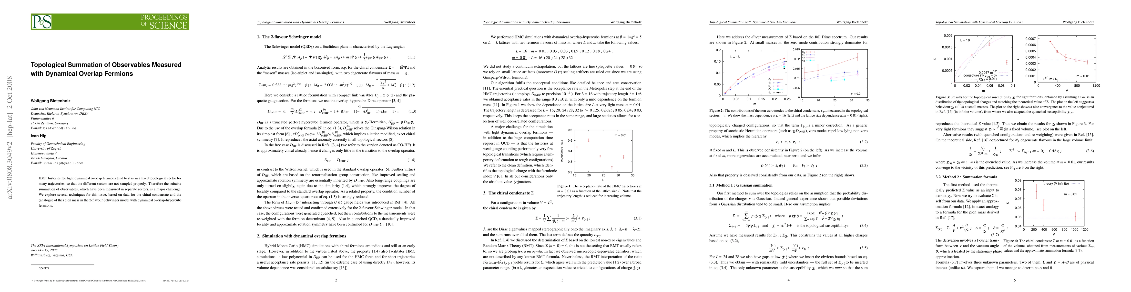 This research investigates methods to properly sum observables measured in different topological sectors for HMC histories of light dynamical overlap fermions, focusing on the chiral condensate and pion mass in the 2-flavour Schwinger model. Various techniques are explored to address the challenge of inadequate sampling across these sectors.