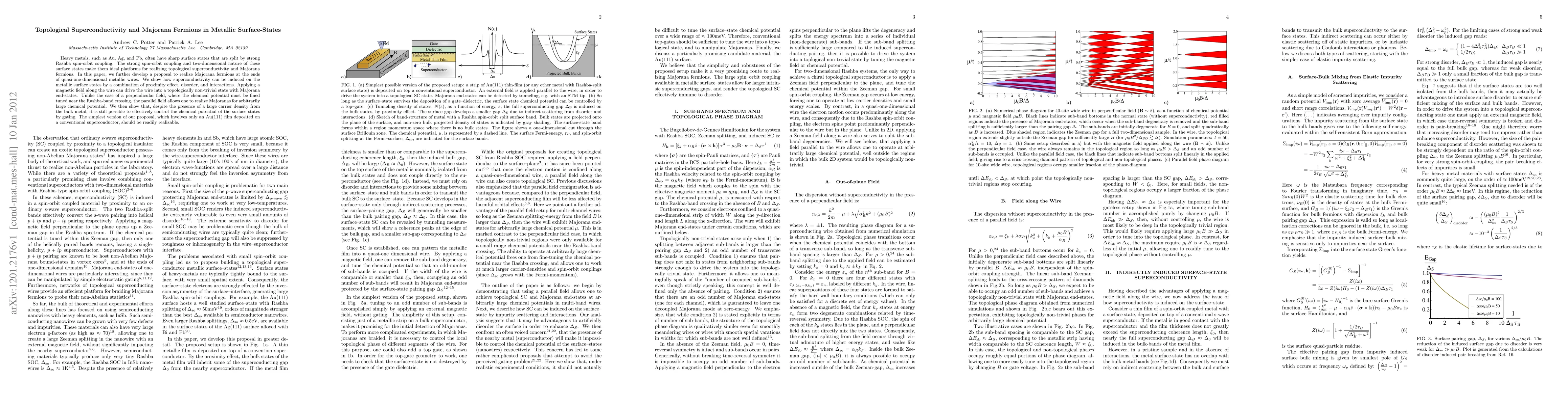 Heavy metals, such as Au, Ag, and Pb, often have sharp surface states that are split by strong Rashba spin-orbit coupling. The strong spin-orbit coupling and two-dimensional nature of these surface states make them ideal platforms for realizing topological superconductivity and Majorana fermions. In this paper, we further develop a proposal to realize Majorana fermions at the ends of quasi-one-dimensional metallic wires. We show how superconductivity can be induced on the metallic surface states by a combination of proximity effect, disorder, and interactions. Applying a magnetic field along the wire can drive the wire into a topologically non-trivial state with Majorana end-states. Unlike the case of a perpendicular field, where the chemical potential must be fined tuned near the Rashba-band crossing, the parallel field allows one to realize Majoranas for arbitrarily large chemical potential. We then show that, despite the presence of a large carrier density from the bulk metal, it is still possible to effectively control the chemical potential of the surface states by gating. The simplest version of our proposal, which involves only an Au(111) film deposited on a conventional superconductor, should be readily realizable.