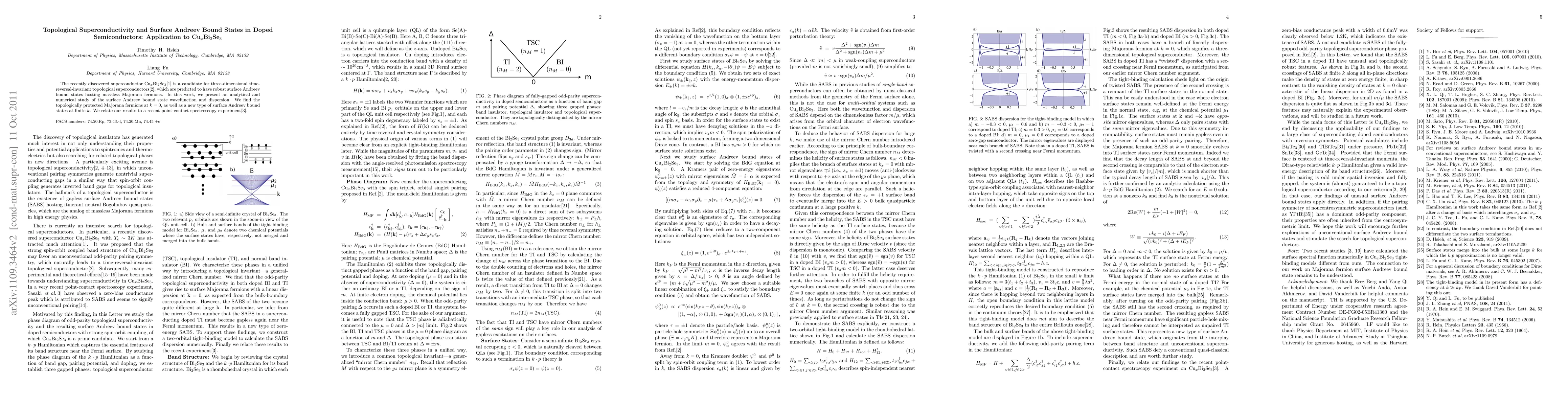 The novelty of this work lies in the discovery of a new type of surface Andreev bound states at finite k, in addition to the established Majorana fermions at k = 0, and the application of this theory to the specific compound CuxBi2Se3.