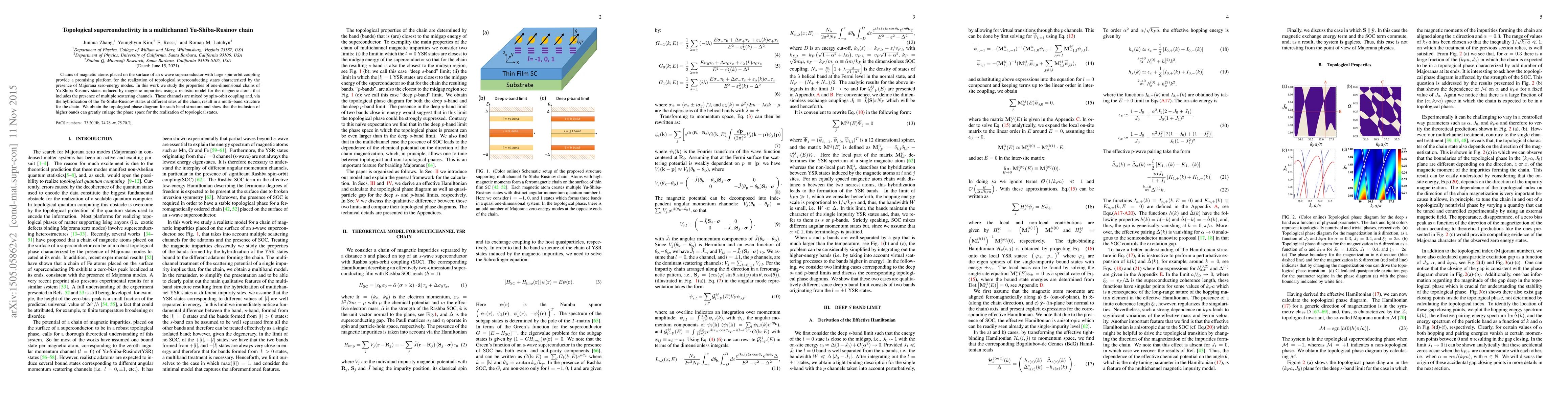 This paper investigates the topological superconductivity in a one-dimensional chain of Yu-Shiba-Rusinov states induced by magnetic impurities on a superconductor's surface, revealing that multiple scattering channels enhance the potential for topological phases and Majorana zero-energy modes.