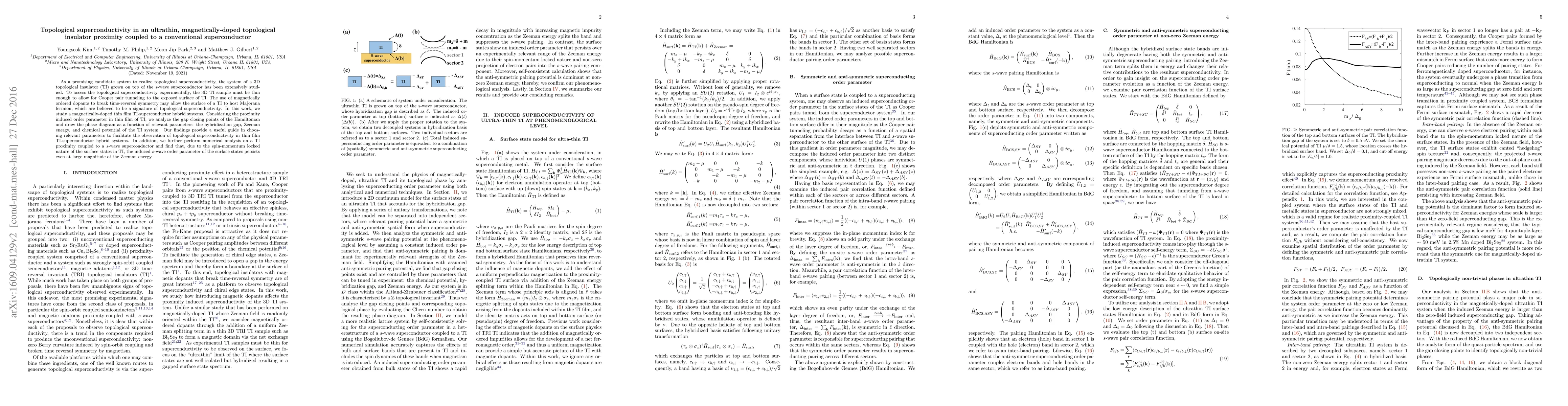 This paper investigates thin, magnetically-doped topological insulators coupled to conventional superconductors to realize topological superconductivity. The study analyzes the phase diagram and induced order parameters to guide experimental observation of Majorana fermions in these hybrid systems.