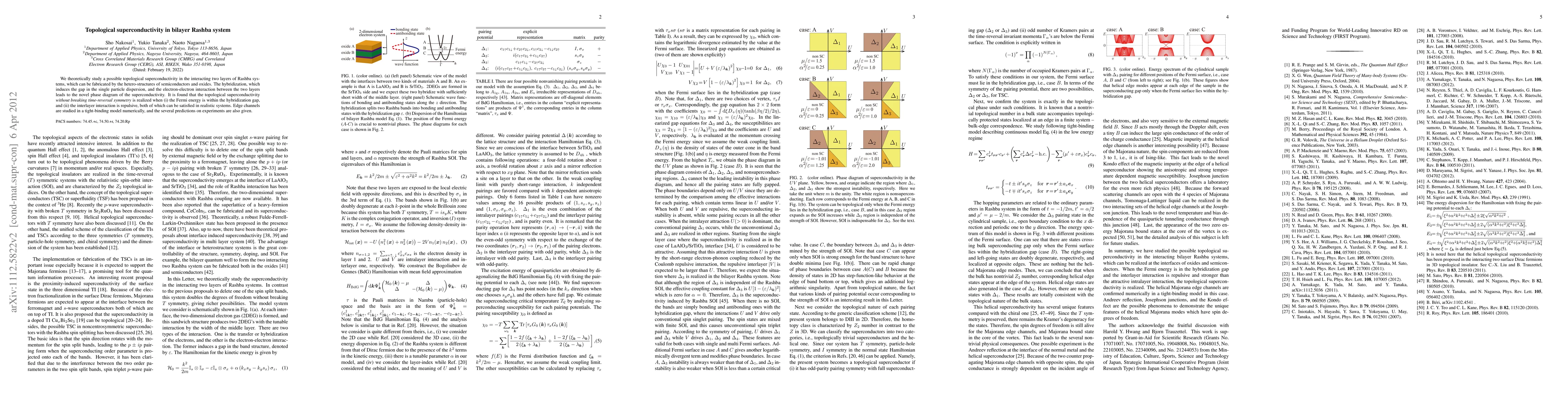 This paper explores the theoretical possibility of topological superconductivity in interacting bilayer Rashba systems, achieved through semiconductor-oxide heterostructures. The study reveals that topological superconductivity can occur without breaking time-reversal symmetry when specific conditions on Fermi energy and inter-layer interaction are met, with numerical predictions for edge channels and experimental implications.