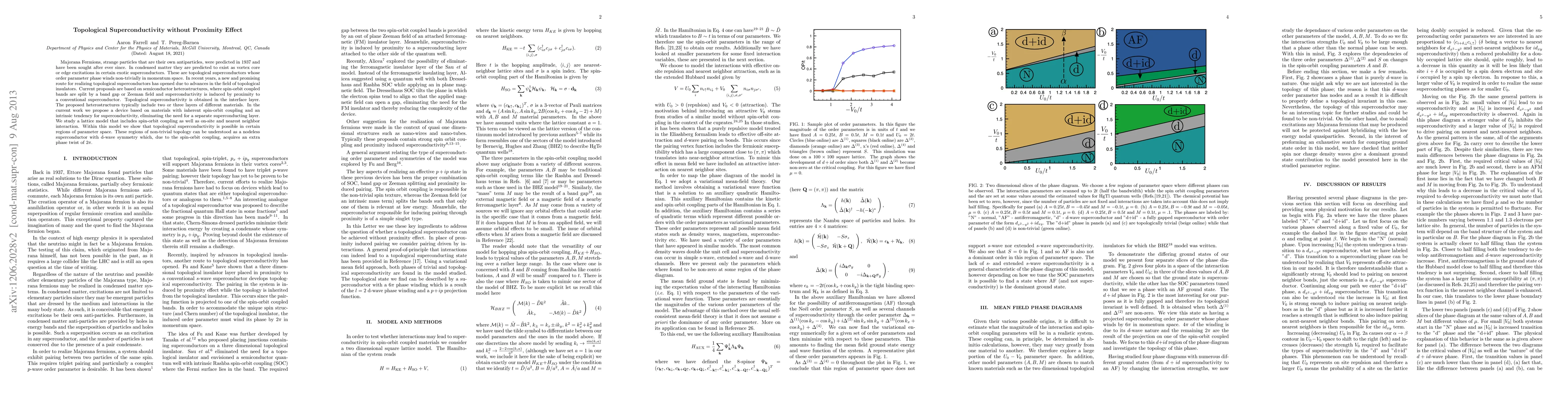 Majorana Fermions, strange particles that are their own antiparticles, were predicted in 1937 and have been sought after ever since. In condensed matter they are predicted to exist as vortex core or edge excitations in certain exotic superconductors. These are topological superconductors whose order parameter phase winds non-trivially in momentum space. In recent years, a new and promising route for realizing topological superconductors has opened due to advances in the field of topological insulators. Current proposals are based on semiconductor heterostructures, where spin-orbit coupled bands are split by a band gap or Zeeman field and superconductivity is induced by proximity to a conventional superconductor. Topological superconductivity is obtained in the interface layer. The proposed heterostructures typically include two or three layers of different materials. In the current work we propose a device based on materials with inherent spin-orbit coupling and an intrinsic tendency for superconductivity, eliminating the need for a separate superconducting layer. We study a lattice model that includes spin-orbit coupling as well as on-site and nearest neighbor interaction. Within this model we show that topological superconductivity is possible in certain regions of parameter space. These regions of non-trivial topology can be understood as a nodeless superconductor with d-wave symmetry which, due to the spin-orbit coupling, acquires an extra phase twist of $2\pi$.