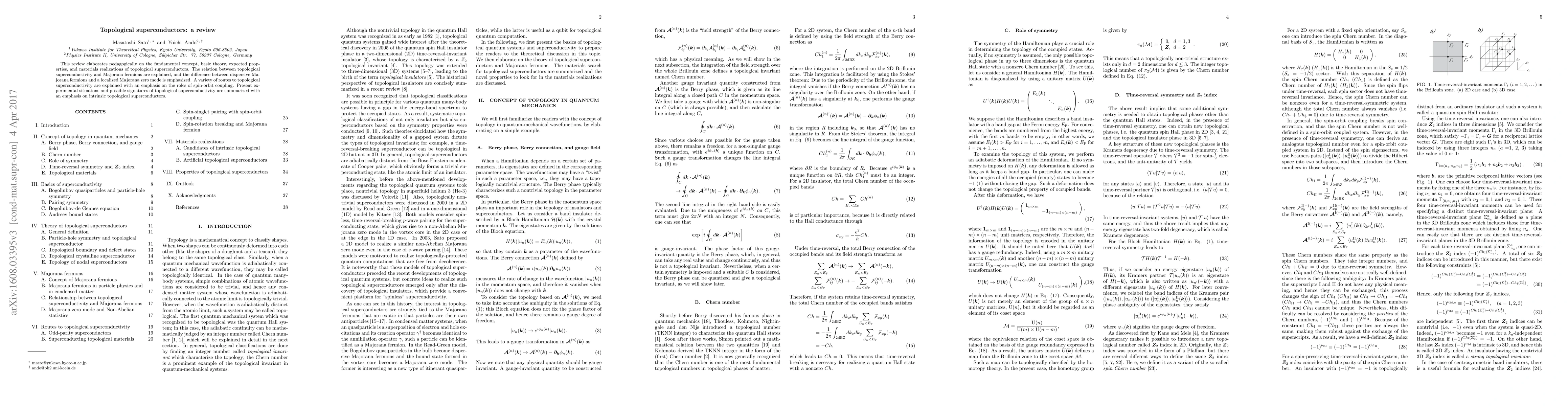 The paper provides a pedagogical review of topological superconductors, covering fundamental concepts, theory, expected properties, materials realizations, and the relation to Majorana fermions.