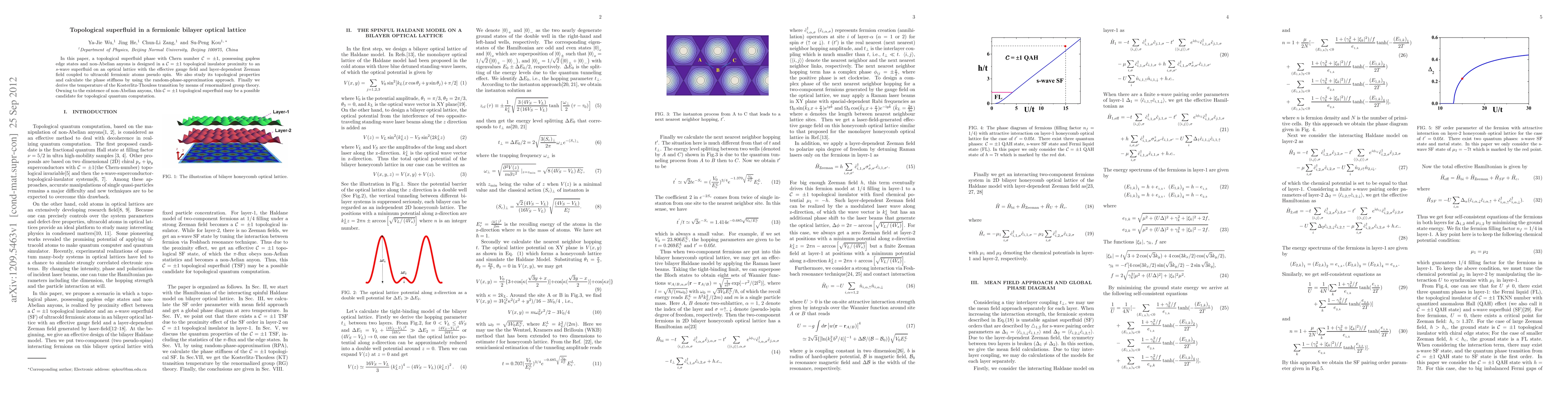This paper investigates a topological superfluid phase in a fermionic bilayer optical lattice featuring a Chern number of 1, with gapless edge states and non-Abelian anyons. It explores the phase's topological properties and potential for quantum computation, determining the Kosterlitz-Thouless transition temperature via renormalized group theory.