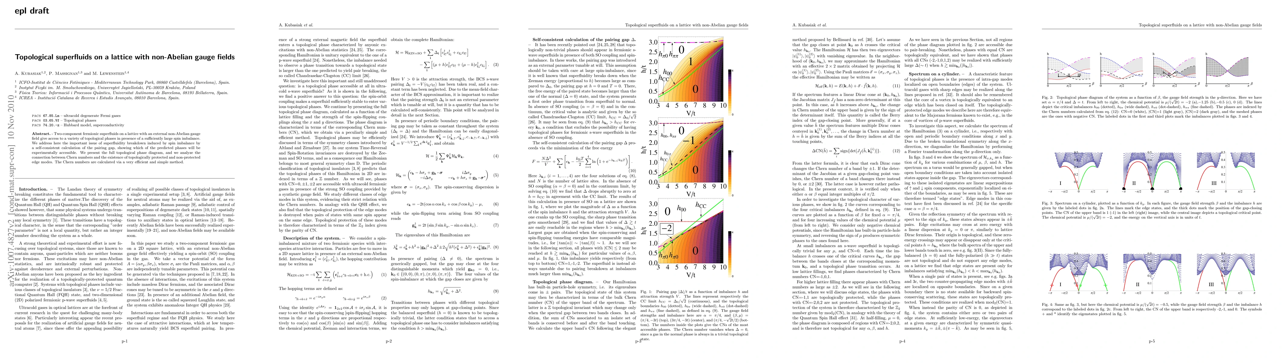 This paper investigates topological superfluids on a lattice with non-Abelian gauge fields, focusing on the superfluidity breakdown due to spin imbalance. It presents a comprehensive topological phase diagram and analyzes the relationship between Chern numbers and edge modes, employing an efficient method for Chern number calculations.