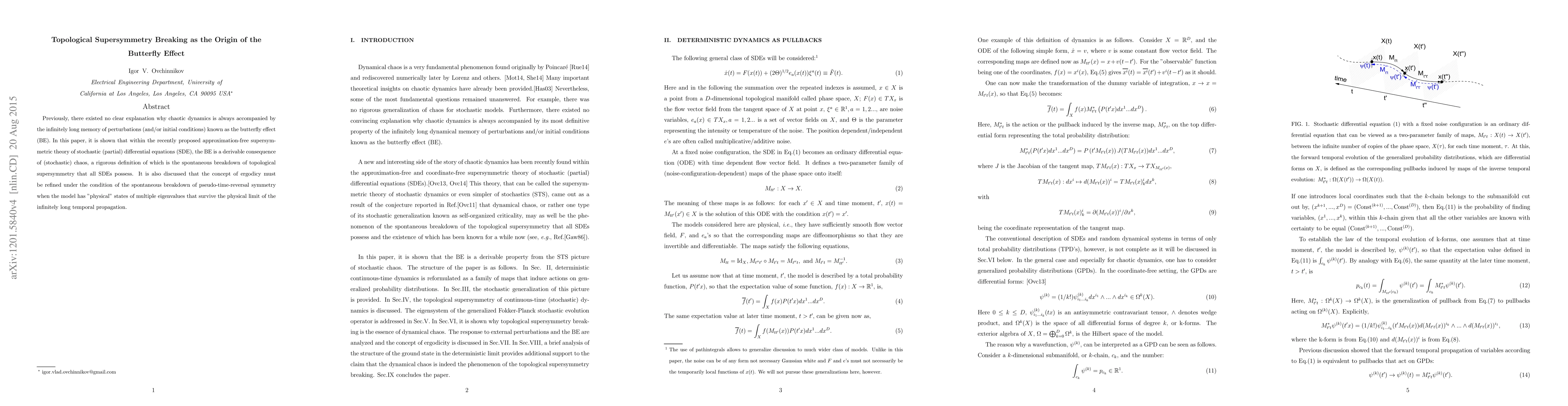 Previously, there existed no clear explanation why chaotic dynamics is always accompanied by the infinitely long memory of perturbations (and/or initial conditions) known as the butterfly effect (BE). In this paper, it is shown that within the recently proposed approximation-free supersymmetric theory of stochastic (partial) differential equations (SDE), the BE is a derivable consequence of (stochastic) chaos, a rigorous definition of which is the spontaneous breakdown of topological supersymmetry that all SDEs possess. It is also discussed that the concept of ergodicy must be refined under the condition of the spontaneous breakdown of pseudo-time-reversal symmetry when the model has "physical" states of multiple eigenvalues that survive the physical limit of the infinitely long temporal propagation.