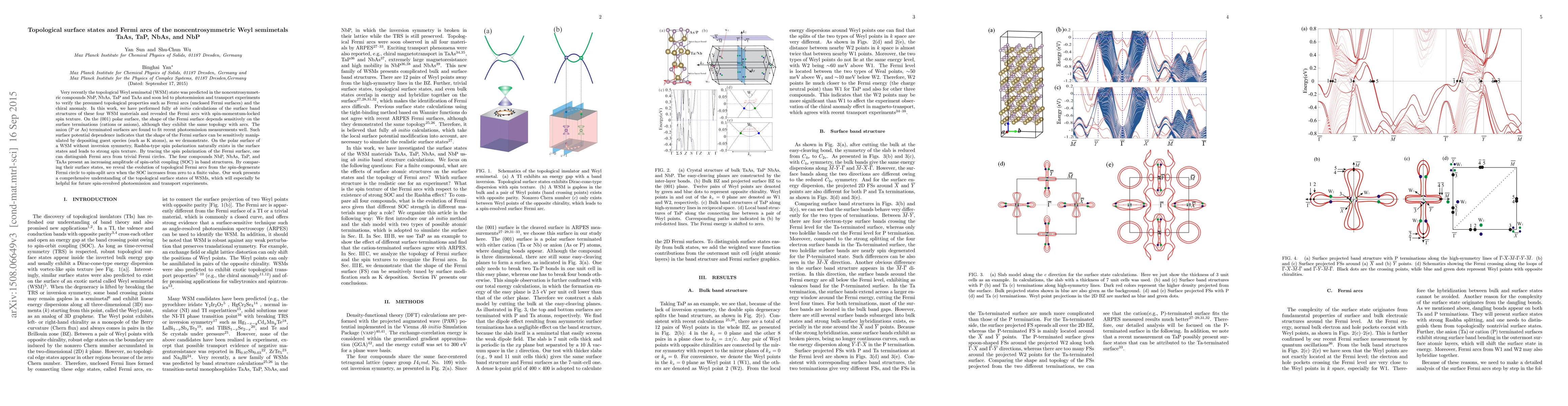 This research uses \textit{ab initio} calculations to study the topological surface states and Fermi arcs in noncentrosymmetric Weyl semimetals TaAs, TaP, NbAs, and NbP, revealing spin-momentum-locked Fermi arcs dependent on surface terminations. The study shows how surface potentials can manipulate Fermi surface shapes and highlights the role of spin-orbit coupling in evolving topological Fermi arcs.