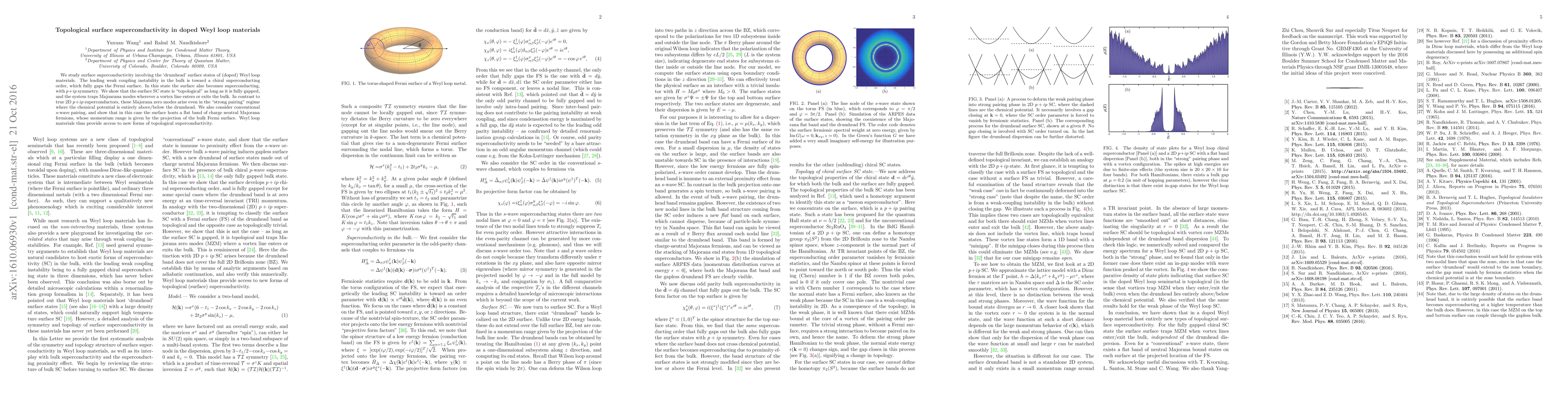 We study surface superconductivity involving the `drumhead' surface states of (doped) Weyl loop materials. The leading weak coupling instability in the bulk is toward a chiral superconducting order, which fully gaps the Fermi surface. In this state the surface also becomes superconducting, with $p+ip$ symmetry. We show that the surface SC state is "topological" as long as it is fully gapped, and the system traps Majoarana modes wherever a vortex line enters or exits the bulk. In contrast to true 2D $p+ip$ superconductors, these Majorana zero modes arise even in the "strong pairing" regime where the chemical potential is entirely above/below the drumhead. We also consider conventional $s$-wave pairing, and show that in this case the surface hosts a flat band of charge neutral Majorana fermions, whose momentum range is given by the projection of the bulk Fermi surface. Weyl loop materials thus provide access to new forms of topological superconductivity.