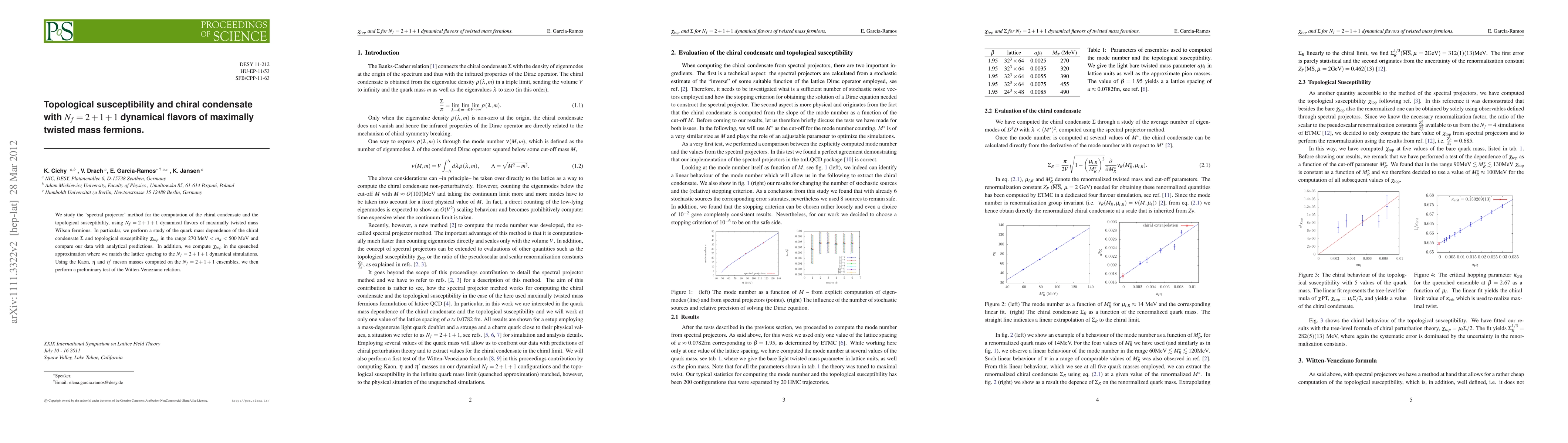 This paper investigates the chiral condensate and topological susceptibility using $N_f=2+1+1$ dynamical flavors of maximally twisted mass fermions, focusing on quark mass dependence and comparing results with analytical predictions. It also tests the Witten-Veneziano relation using meson masses.