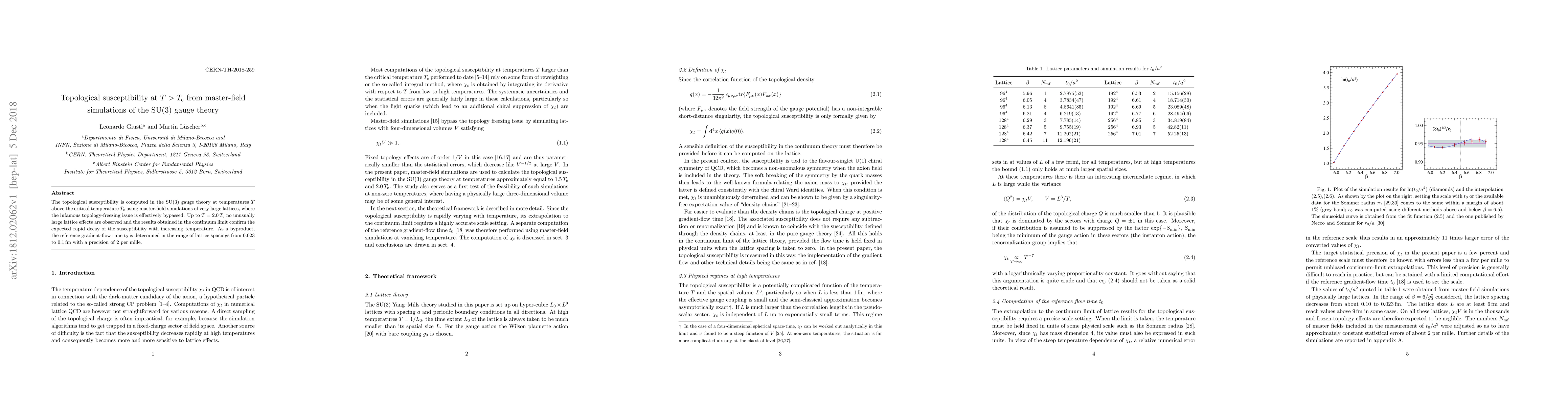 Researchers used master-field simulations to study topological susceptibility in SU(3) gauge theory above critical temperature $T_c$, finding no unusual lattice effects until $2.0T_c$, confirming rapid decay of susceptibility with increasing temperature.