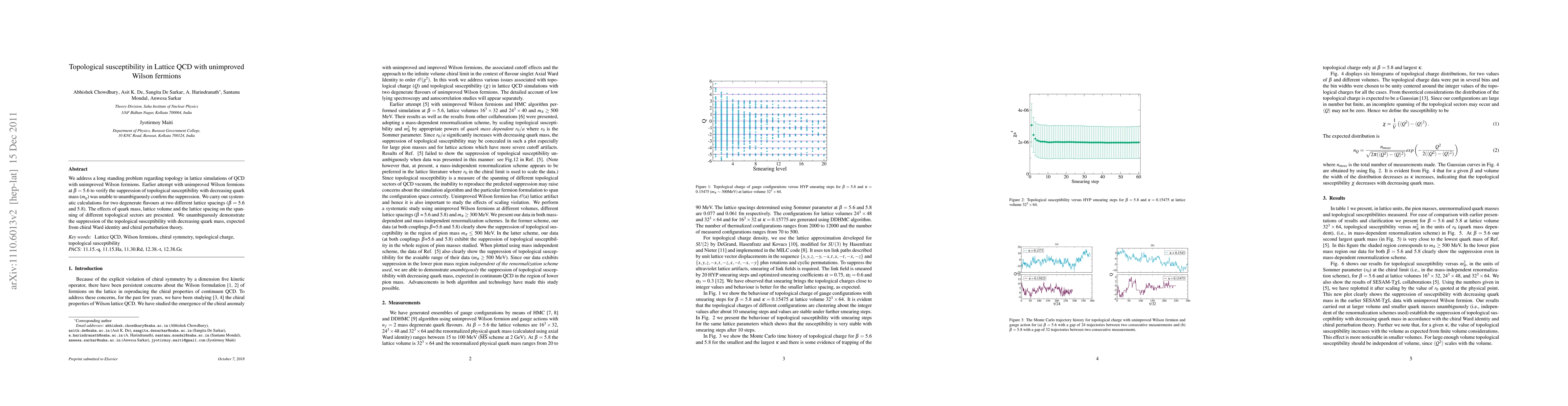This paper investigates topological susceptibility in lattice QCD using unimproved Wilson fermions, systematically examining two degenerate flavours at different lattice spacings. The study conclusively shows the expected suppression of topological susceptibility with decreasing quark mass, resolving previous ambiguities.