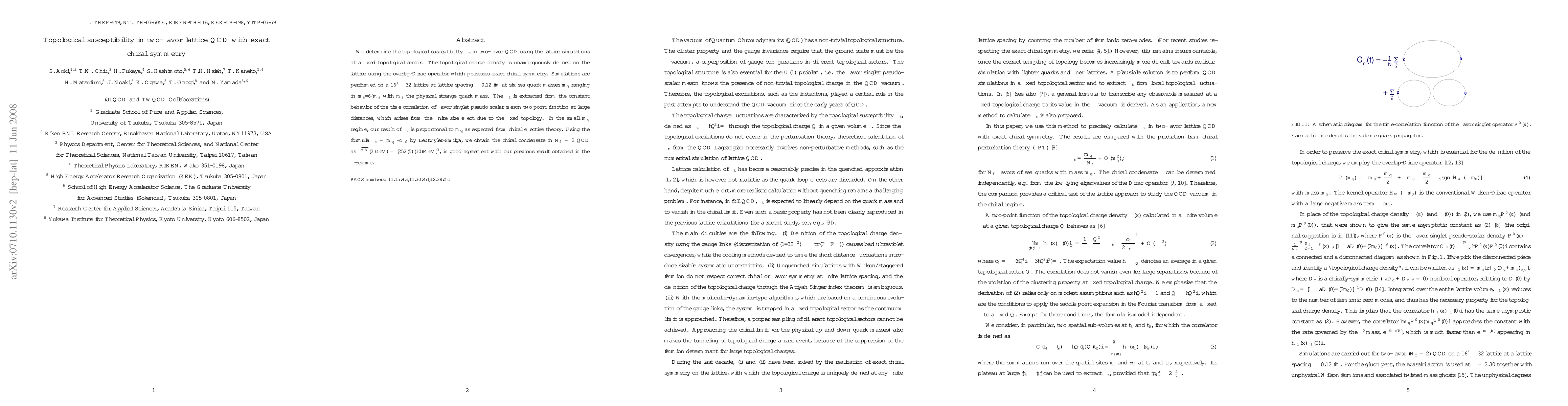 This paper determines the topological susceptibility $\chi_t$ in two-flavor lattice QCD using simulations with exact chiral symmetry. The study finds $\chi_t$ proportional to $m_q$ in the small quark mass regime, leading to a chiral condensate value of $\Sigma^{\bar{\mathrm{MS}}}(\mathrm{2 GeV}) = [252(5)(10) \mathrm{MeV}]^3$, consistent with previous results.