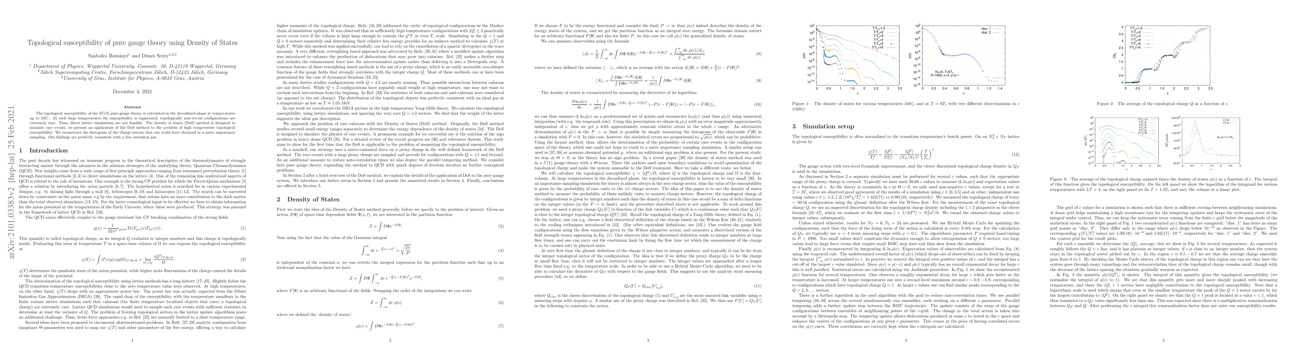 The paper calculates the topological susceptibility of SU(3) pure gauge theory at high temperatures using the density of states method, finding it suppressed and consistent with a free instanton gas. This approach allows for the simulation of rare topological configurations that are infeasible via direct lattice simulations.