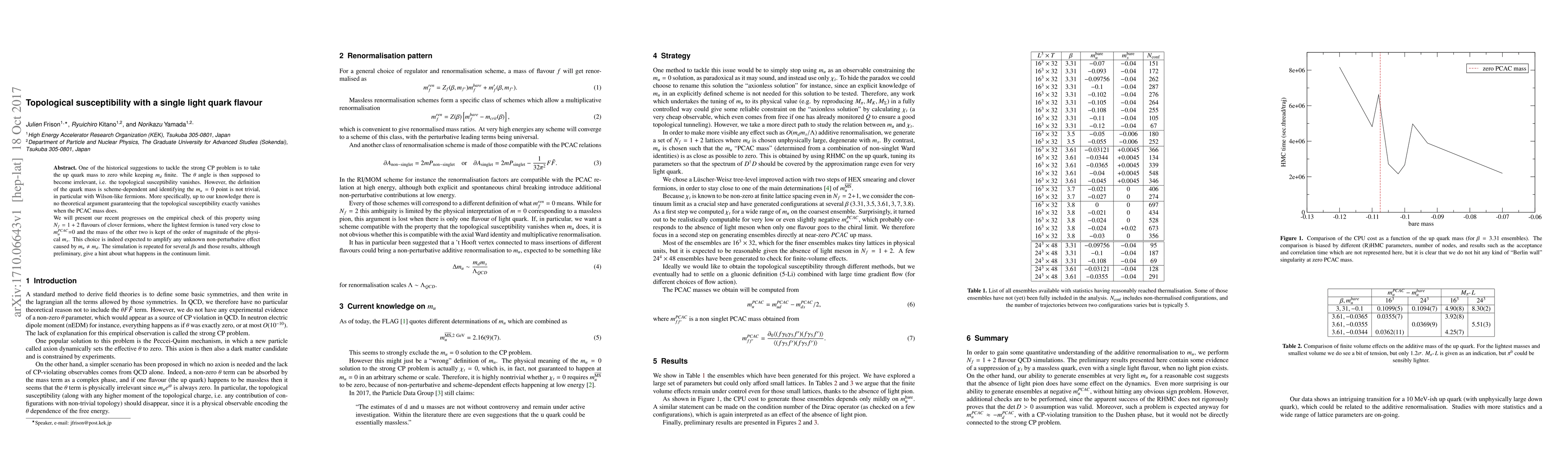 This paper investigates the topological susceptibility with a single light quark flavor, challenging the historical suggestion that it vanishes when the up quark mass is taken to zero.