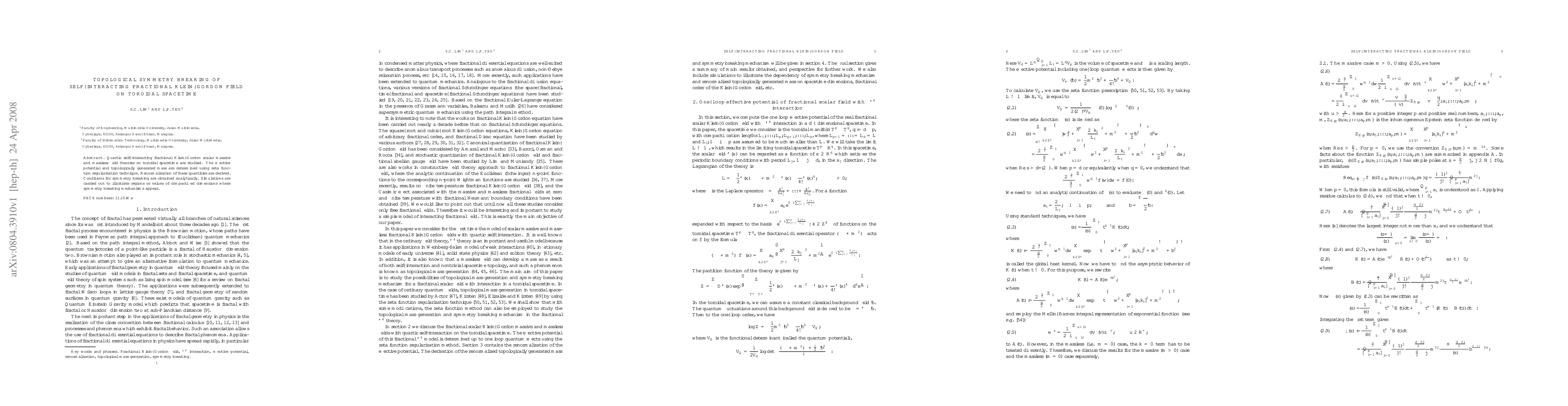 This paper investigates quartic self-interacting fractional Klein-Gordon fields on toroidal spacetime, determining effective potentials and topologically generated masses via zeta function regularization, and deriving analytical conditions for symmetry breaking through simulations.