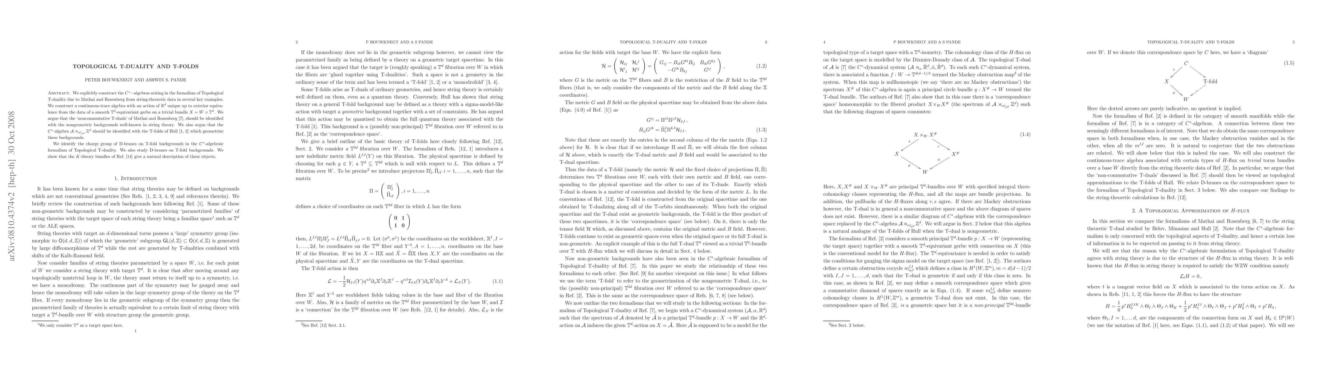 This paper constructs C*-algebras from string-theoretic data, identifying noncommutative T-duals with nongeometric string backgrounds and T-folds with their geometric counterparts. It also connects D-brane charges to the C*-algebraic formalism of Topological T-duality, using K-theory bundles for a natural description.