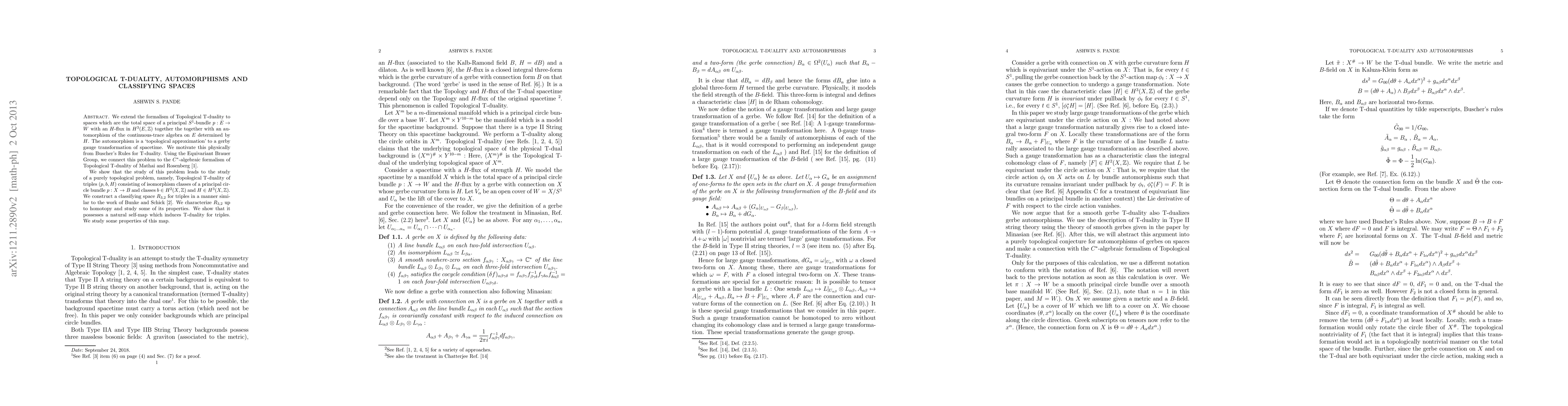 This paper extends the formalism of Topological T-duality to principal $S^1$-bundles with $H$-flux, linking it to automorphisms of continuous-trace algebras. It constructs a classifying space $R_{3,2}$ for topological T-duality triples and shows this space has a self-map inducing T-duality.