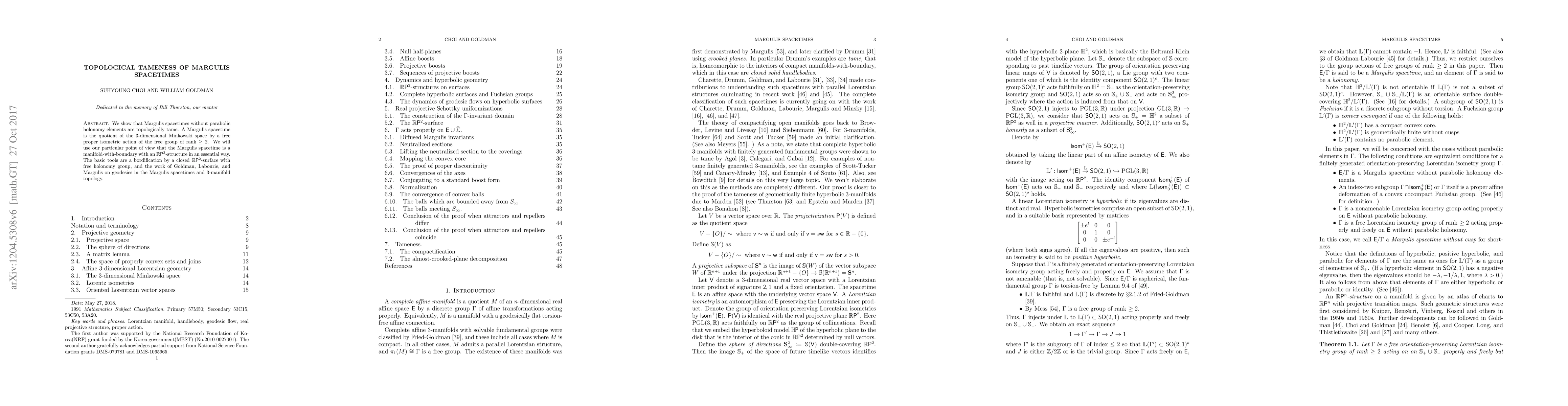 Summary: The research demonstrates that Margulis spacetimes lacking parabolic holonomy are topologically tame. It employs a unique perspective that regards these spacetimes as manifold-with-boundaries with an $\mathbb{R} P^3$-structure, using bordification and advanced tools from geodesics and $3$-manifold topology.
