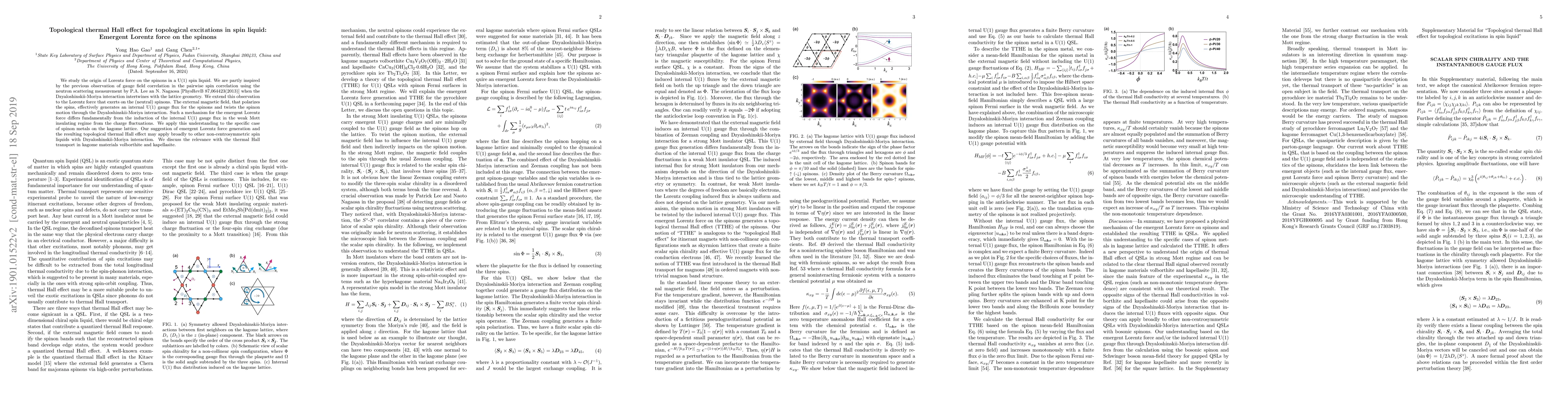 We study the origin of Lorentz force on the spinons in a U(1) spin liquid. We are inspired by the previous observation of gauge field correlation in the pairwise spin correlation using the neutron scattering measurement when the Dzyaloshinskii-Moriya interaction intertwines with the lattice geometry. We extend this observation to the Lorentz force that exerts on the (neutral) spinons. The external magnetic field, that polarizes the spins, effectively generates an internal U(1) gauge flux for the spinons and twists the spinon motion through the Dzyaloshinskii-Moriya interaction. Such a mechanism for the emergent Lorentz force differs fundamentally from the induction of the internal U(1) gauge flux in the weak Mott insulating regime from the charge fluctuations. We apply this understanding to the specific case of spinon metals on the kagome lattice. Our suggestion of emergent Lorentz force generation and the resulting topological thermal Hall effect may apply broadly to other non-centrosymmetric spin liquids with Dzyaloshinskii-Moriya interaction. We discuss the relevance with the thermal Hall transport in kagome materials volborthite and kapellasite.