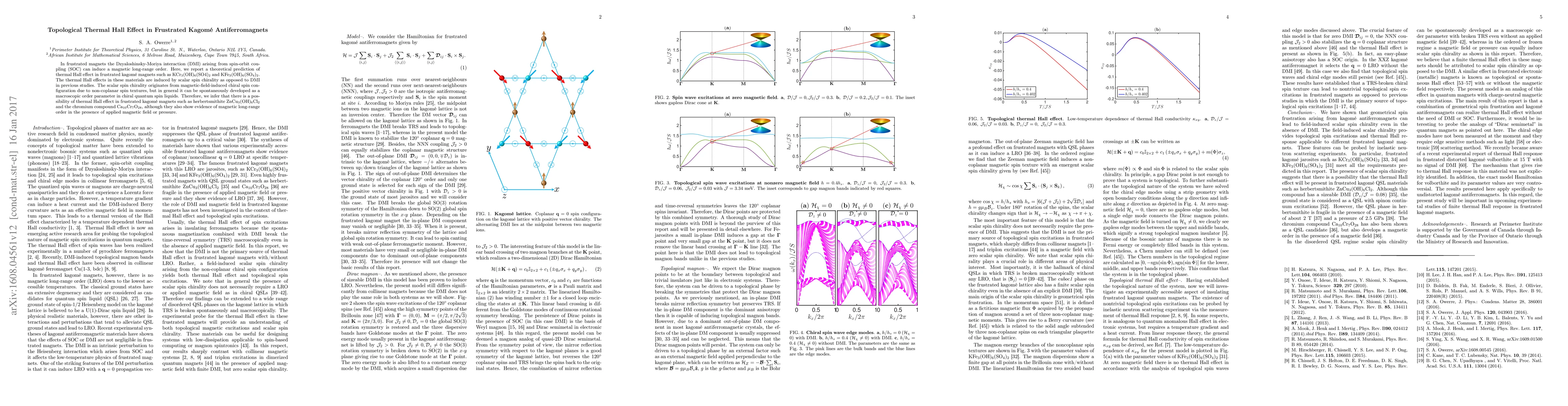 This paper theoretically predicts the topological thermal Hall effect in frustrated kagomé magnets, attributing it to scalar spin chirality rather than Dzyaloshinsky-Moriya interaction. It suggests that materials like KCr$_3$(OH)$_6$(SO$_4$)$_2$ exhibit this effect due to non-coplanar spin textures.