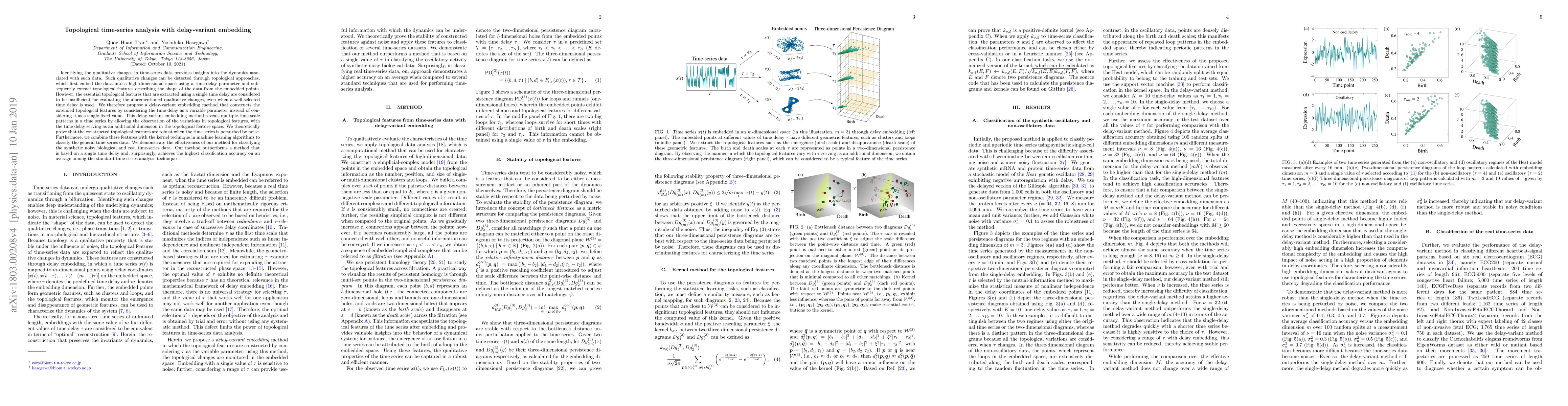 Identifying the qualitative changes in time-series data provides insights into the dynamics associated with such data. Such qualitative changes can be detected through topological approaches, which first embed the data into a high-dimensional space using a time-delay parameter and subsequently extract topological features describing the shape of the data from the embedded points. However, the essential topological features that are extracted using a single time delay are considered to be insufficient for evaluating the aforementioned qualitative changes, even when a well-selected time delay is used. We therefore propose a delay-variant embedding method that constructs the extended topological features by considering the time delay as a variable parameter instead of considering it as a single fixed value. This delay-variant embedding method reveals multiple-time-scale patterns in a time series by allowing the observation of the variations in topological features, with the time delay serving as an additional dimension in the topological feature space. We theoretically prove that the constructed topological features are robust when the time series is perturbed by noise. Furthermore, we combine these features with the kernel technique in machine learning algorithms to classify the general time-series data. We demonstrate the effectiveness of our method for classifying the synthetic noisy biological and real time-series data. Our method outperforms a method that is based on a single time delay and, surprisingly, achieves the highest classification accuracy on an average among the standard time-series analysis techniques.