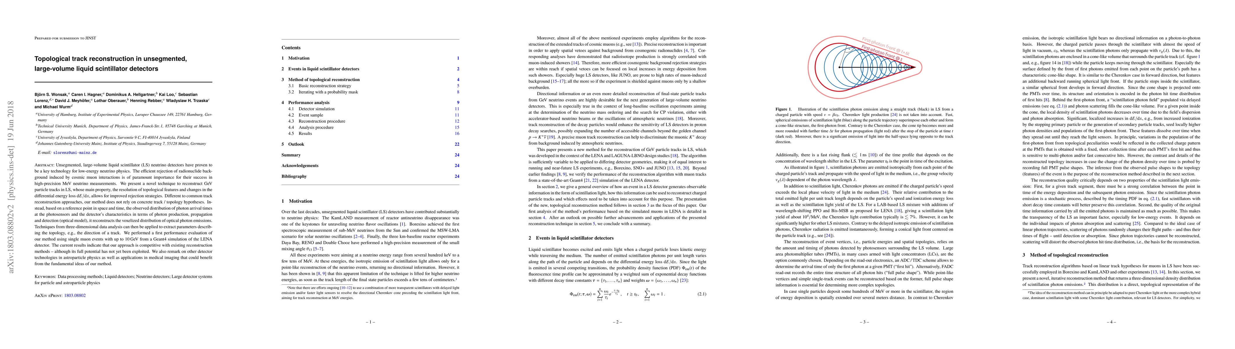 This paper introduces a novel technique for reconstructing GeV particle tracks in unsegmented, large-volume liquid scintillator detectors, focusing on topological features and energy loss resolution to improve background rejection. The method reconstructs optical photon emissions without relying on specific track hypotheses, showing competitive performance in initial evaluations using simulated muon events.