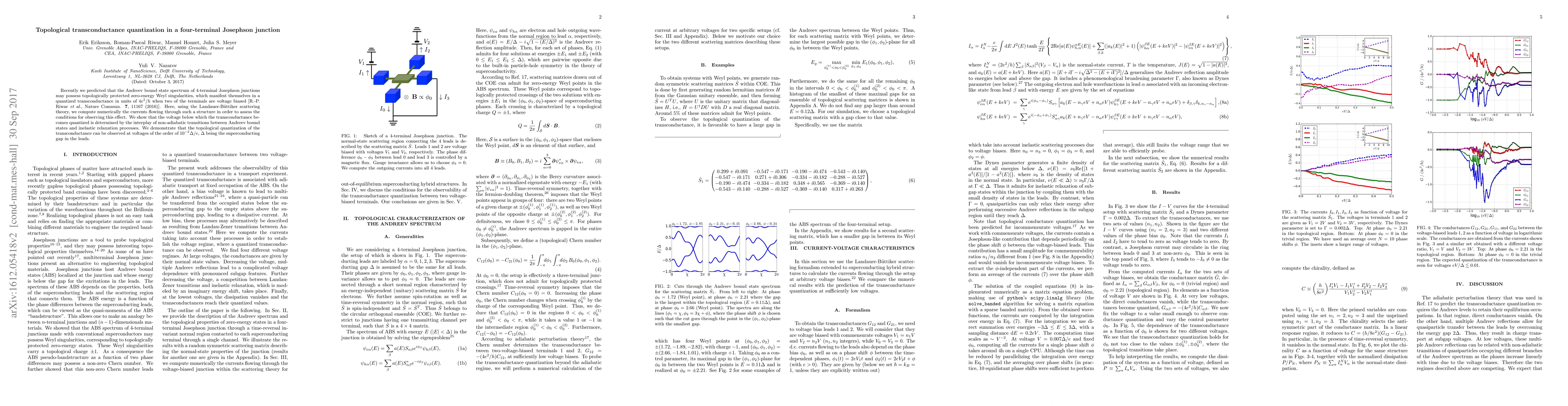 This paper investigates the topologically protected zero-energy Weyl singularities in 4-terminal Josephson junctions, revealing a quantized transconductance of $4e^2/h$. Numerical simulations using Landauer-Büttiker scattering theory show that the transconductance quantization occurs at voltages around $10^{-2} \Delta/e$, highlighting the role of non-adiabatic transitions and inelastic relaxation processes.