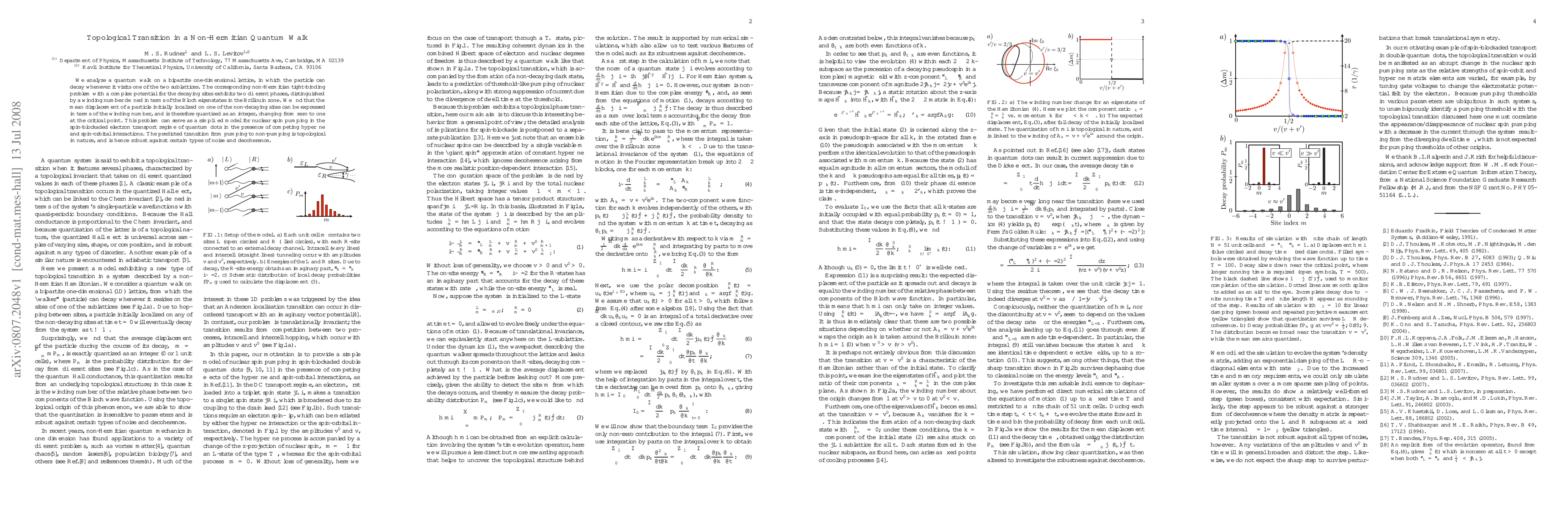 This paper investigates a non-Hermitian quantum walk on a decaying bipartite lattice, revealing a topological transition characterized by a winding number. The mean displacement of particles is quantized and changes from zero to one at the critical point, indicating a robust topological transition akin to nuclear spin pumping in quantum dots.