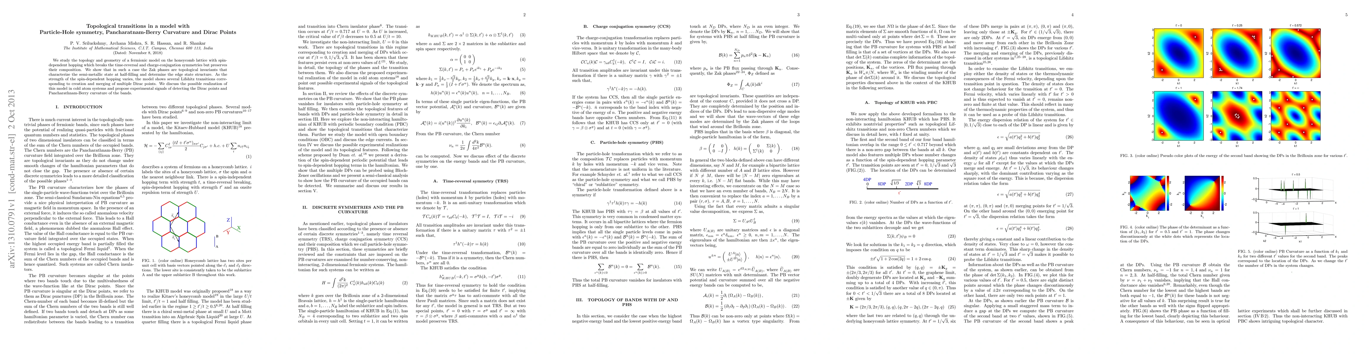 We study the topology and geometry of a fermionic model on the honeycomb lattice with spin-dependent hopping which breaks the time-reversal and charge-conjugation symmetries but preserves their composition. We show that in such a case the Zak phases are topological invariants that characterize the semi-metallic state at half-filling and determine the edge state structure. As the strength of the spin-dependent hopping varies, the model shows several Lifshitz transitions corresponding to creation and merging of multiple Dirac points. We discuss the possible realization of this model in cold atom systems and propose experimental signals of detecting the Dirac points and Pancharathnam-Berry curvature of the bands.