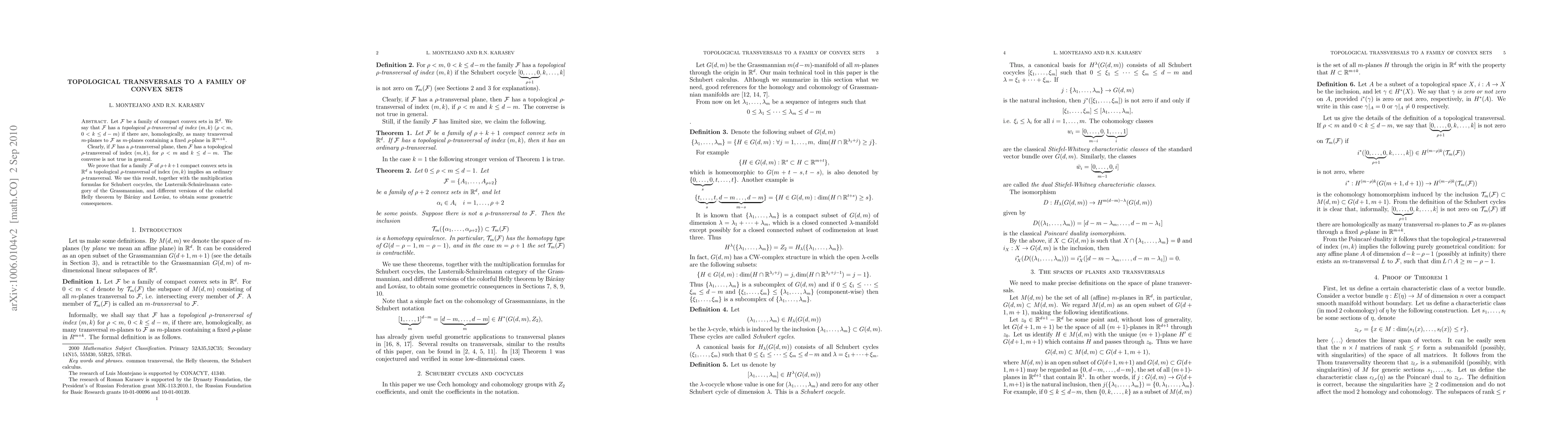 that $\mathcal F $ has a \emph{topological $\rho$-transversal of index $(m,k)$}