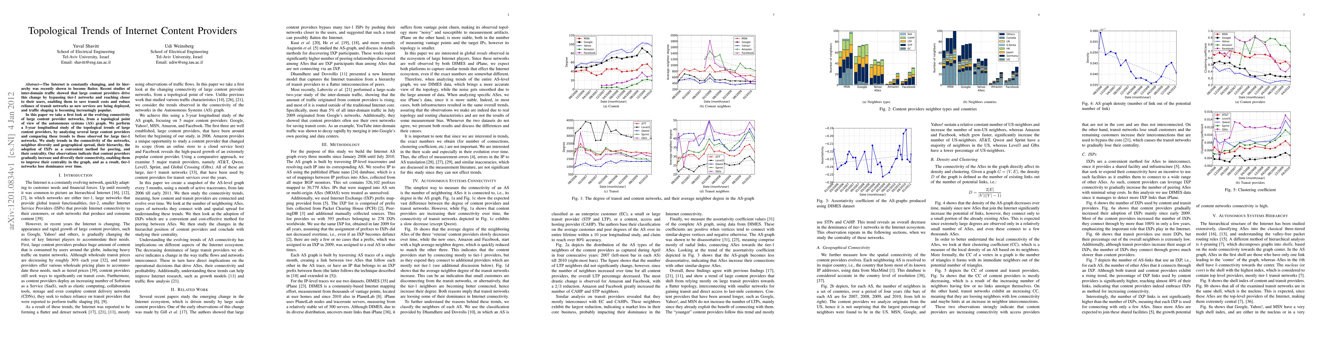 This paper examines the topological evolution of large content provider networks over five years, revealing a trend towards increased connectivity, diversity, and geographical spread, which enhances their centrality and diminishes the dominance of traditional tier-1 networks. The study highlights the adoption of Internet Exchange Points (IXPs) and reduced reliance on transit networks.