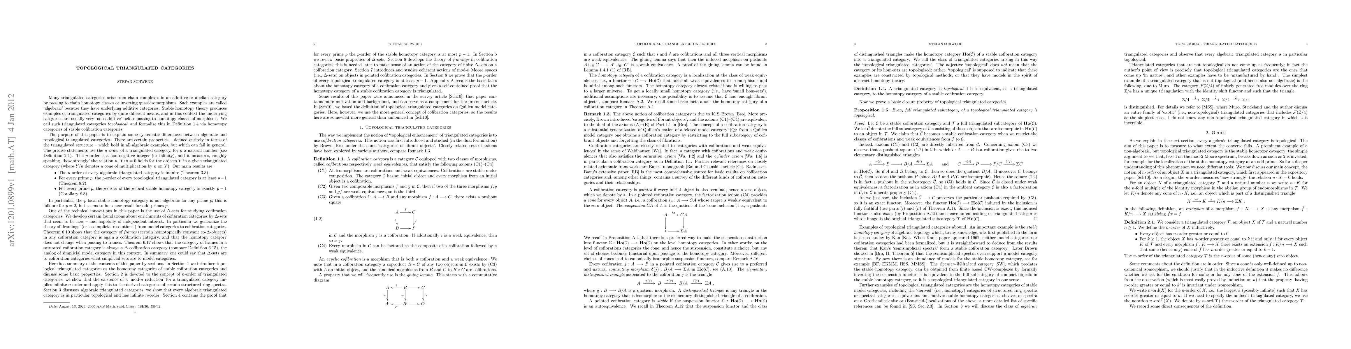 This paper investigates the distinctions between algebraic and topological triangulated categories, proving that algebraic categories have infinite n-order, while topological categories have at least p-1 order for prime p. The study also establishes that the p-local stable homotopy category, having p-1 order, is inherently non-algebraic.