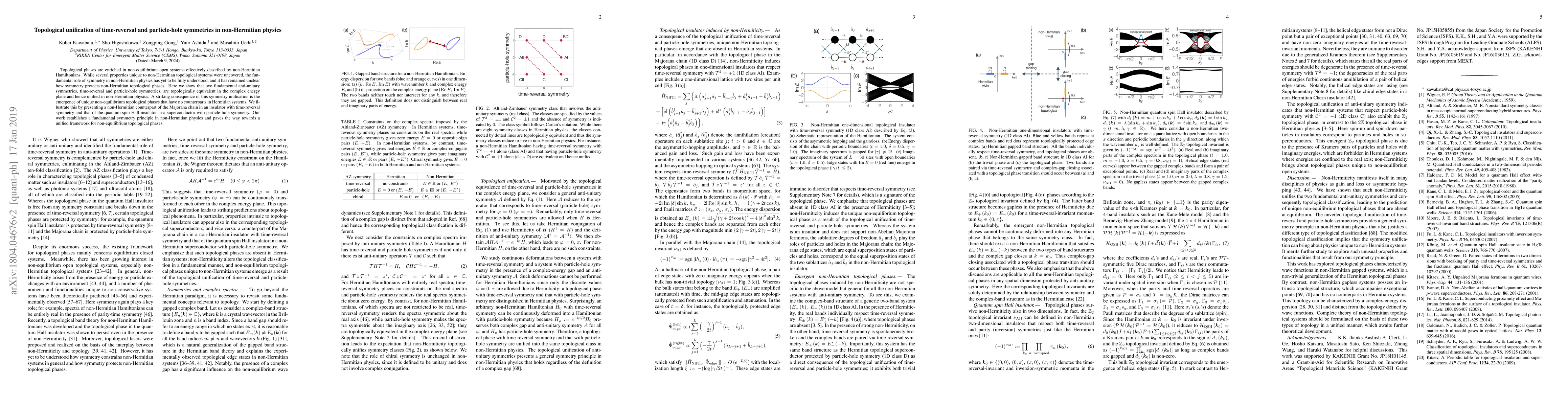 This paper demonstrates that time-reversal and particle-hole symmetries are topologically equivalent in non-Hermitian physics, leading to unique non-equilibrium topological phases. It establishes a fundamental symmetry principle and presents non-Hermitian analogs of topological insulators.