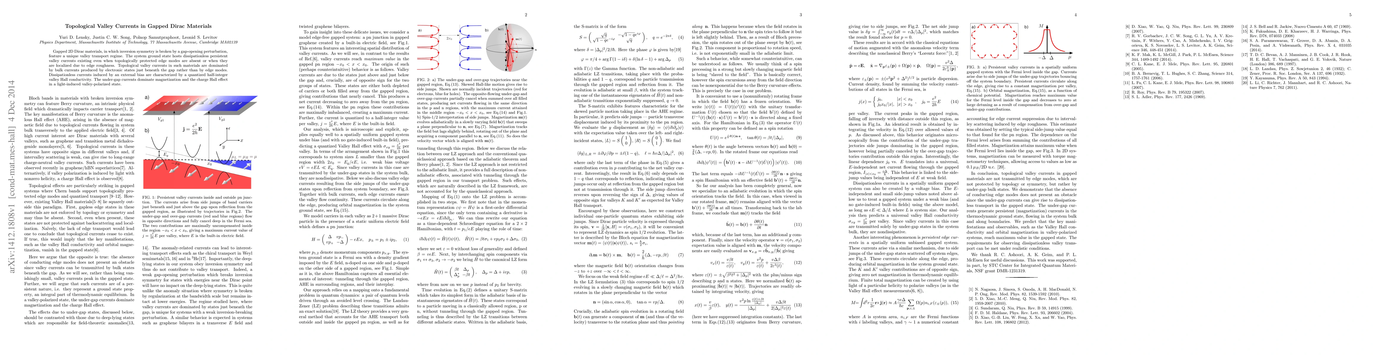 This paper investigates gapped 2D Dirac materials with broken inversion symmetry, revealing the existence of topological valley currents driven by bulk electronic states beneath the gap. These persistent valley currents are dissipationless and characterized by quantized half-integer valley Hall conductivity, dominating magnetization and the charge Hall effect in a light-induced valley-polarized state.