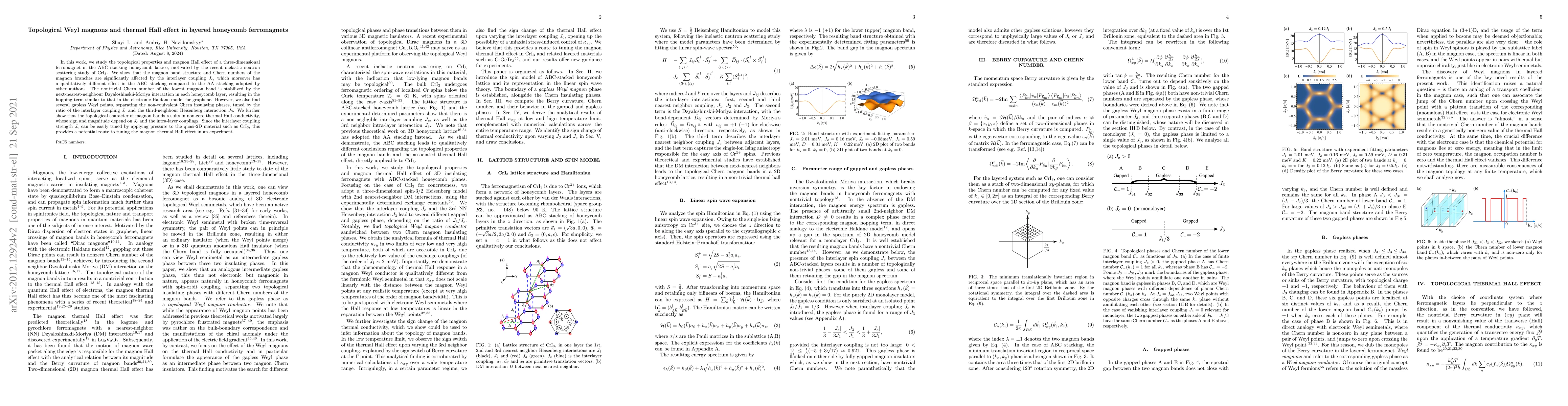 This paper explores the topological properties and magnon Hall effect in a three-dimensional ferromagnet with an ABC stacking honeycomb lattice. It reveals that interlayer coupling and Dzyaloshinsky-Moriya interaction lead to a nontrivial Chern number and thermal Hall effect, with tunable Weyl points and thermal conductivity influenced by the interlayer coupling strength.