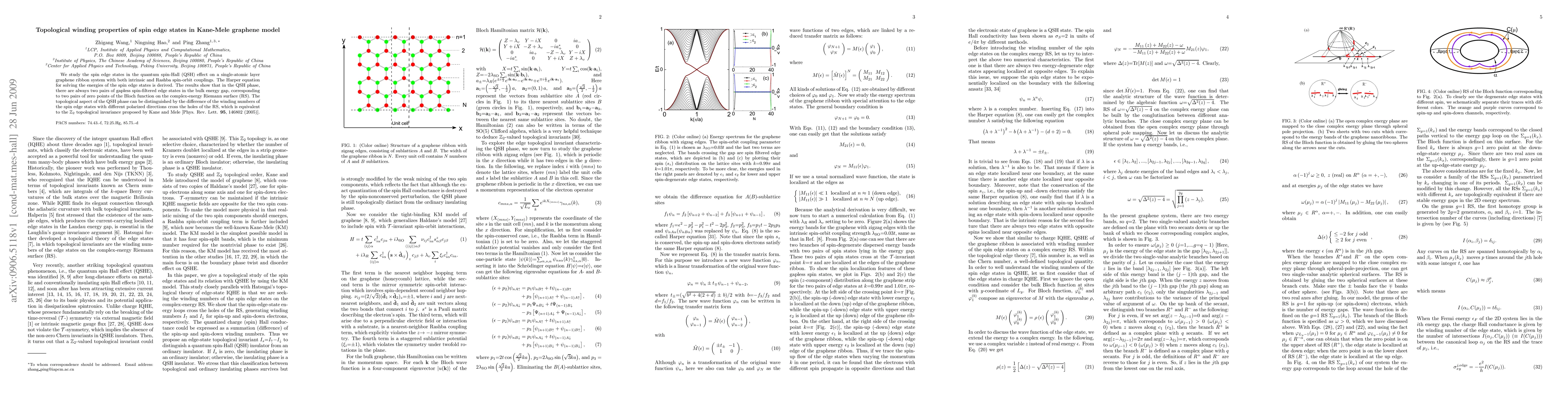 This paper investigates spin edge states in the quantum spin-Hall effect in Kane-Mele graphene, revealing two pairs of gapless spin-filtered edge states in the bulk energy gap. The topological winding properties are characterized by the difference in winding numbers of spin edge states, confirming the Z2 topological invariance.