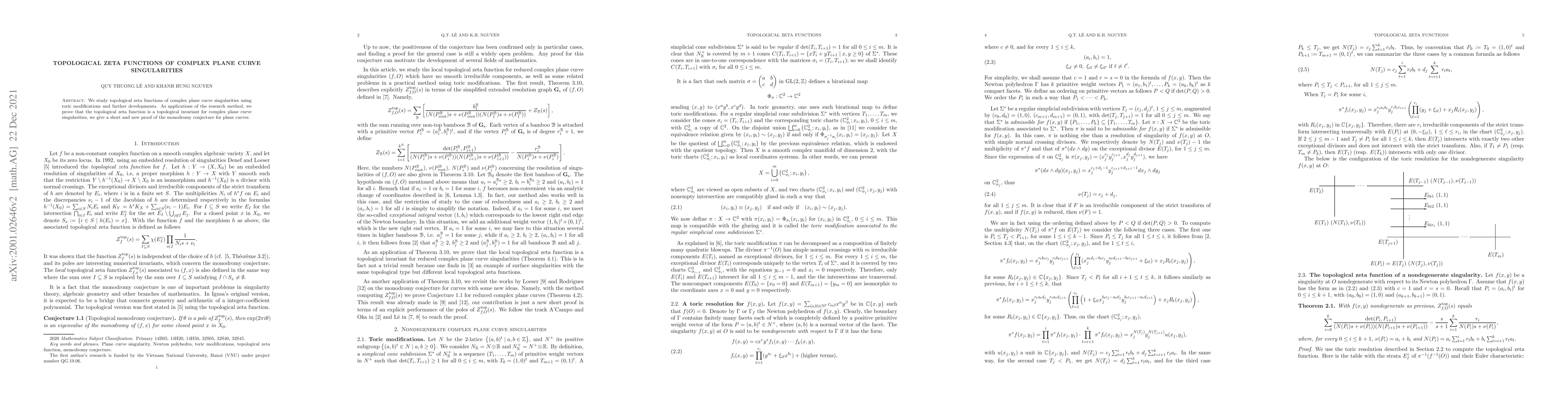 This paper investigates topological zeta functions of complex plane curve singularities through toric modifications, proving their topological invariance and providing a new proof for the monodromy conjecture for plane curves.