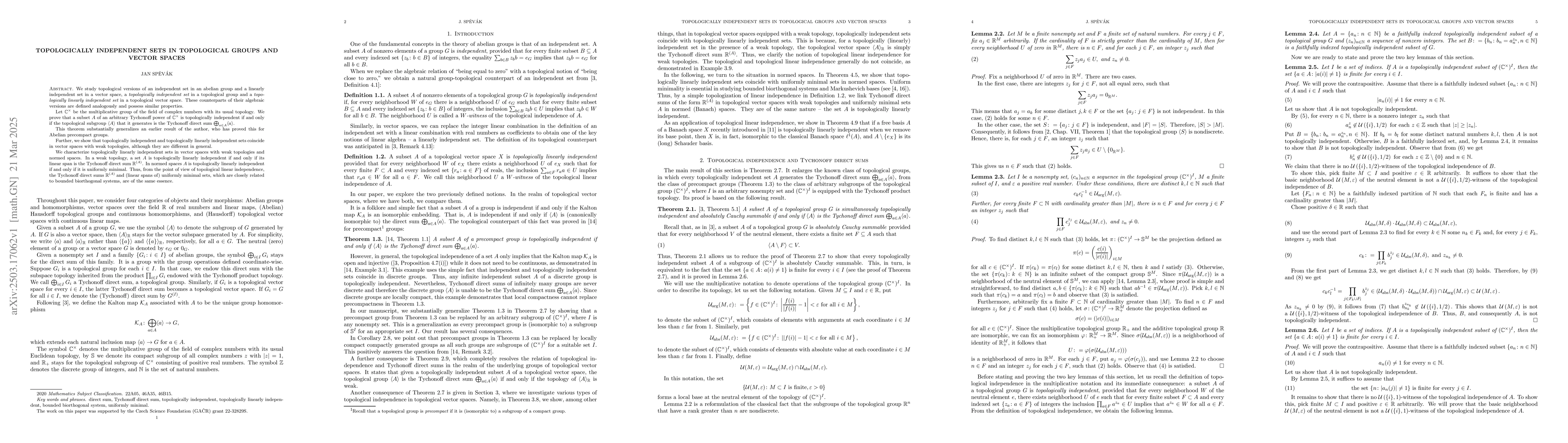 The paper studies topological versions of independent sets in abelian groups and linearly independent sets in vector spaces, defining topologically independent sets in topological groups and topologically linearly independent sets in topological vector spaces. It proves key theorems about these sets, generalizing previous results and characterizing their properties in various topological spaces.