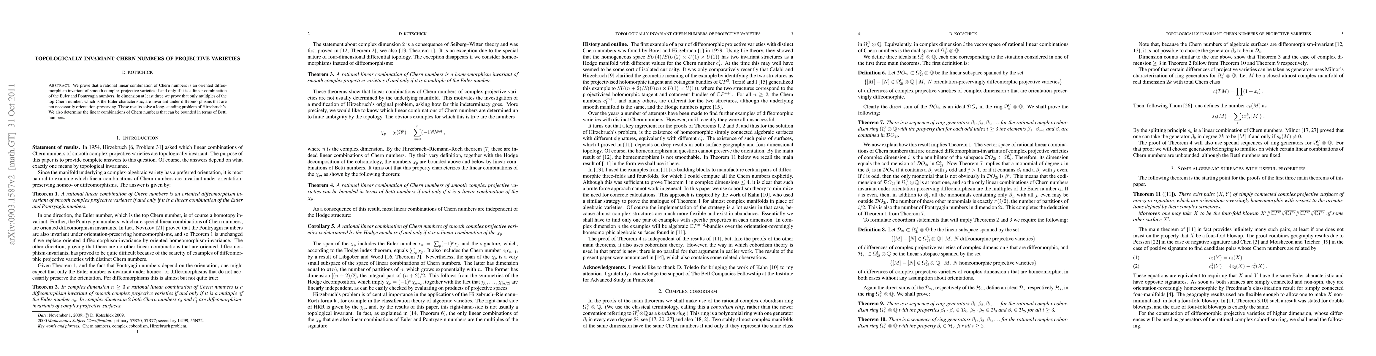 We prove that a rational linear combination of Chern numbers is an oriented diffeomorphism invariant of smooth complex projective varieties if and only if it is a linear combination of the Euler and Pontryagin numbers. In dimension at least three we prove that only multiples of the top Chern number, which is the Euler characteristic, are invariant under diffeomorphisms that are not necessarily orientation-preserving. These results solve a long-standing problem of Hirzebruch's. We also determine the linear combinations of Chern numbers that can be bounded in terms of Betti numbers.