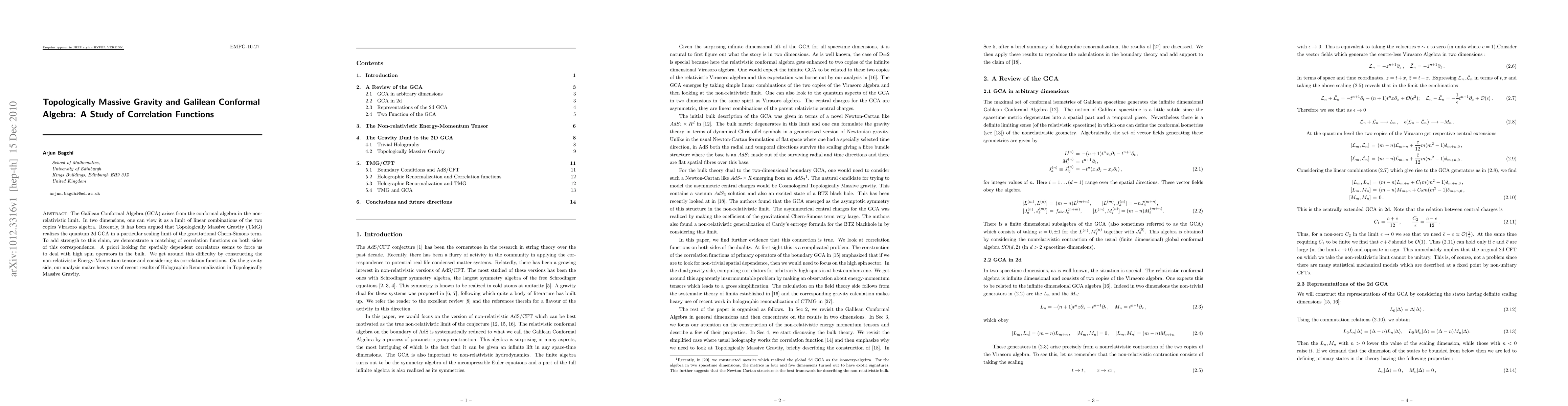 This paper investigates the realization of the quantum 2d Galilean Conformal Algebra (GCA) in Topologically Massive Gravity (TMG) by demonstrating matching correlation functions. It circumvents high spin operator issues by focusing on the non-relativistic Energy-Momentum tensor and leverages Holographic Renormalization techniques for gravity analysis.