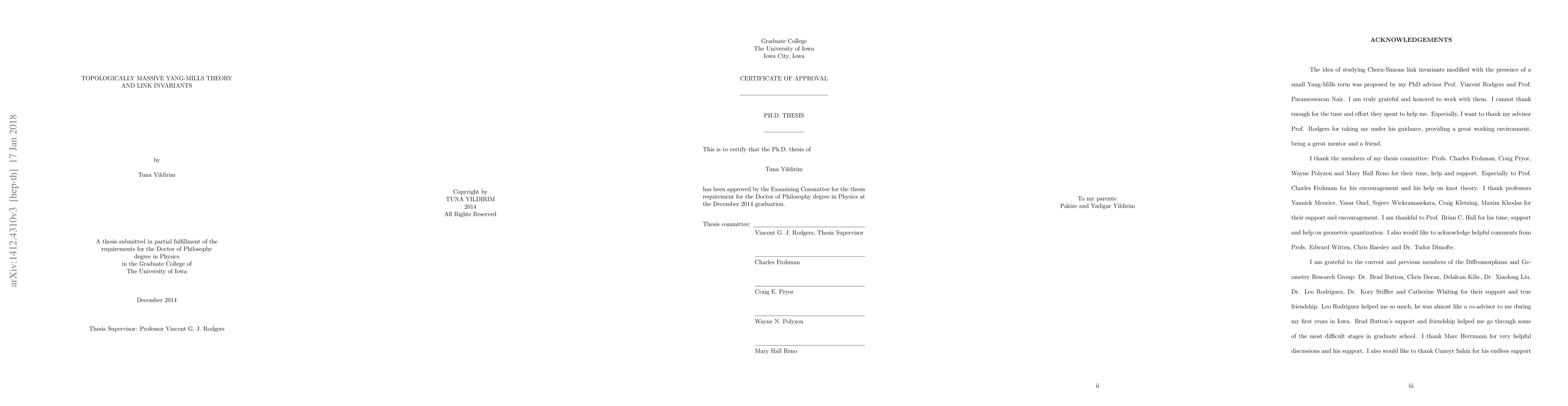 This thesis explores topologically massive Yang-Mills theory in the context of geometric quantization, demonstrating its decay to a pure Chern-Simons theory in the near Chern-Simons limit. It reveals that this theory splits into two Chern-Simons theories with level $k/2$, analogous to the splitting in topologically massive AdS gravity, and uses skein relations to calculate observables.