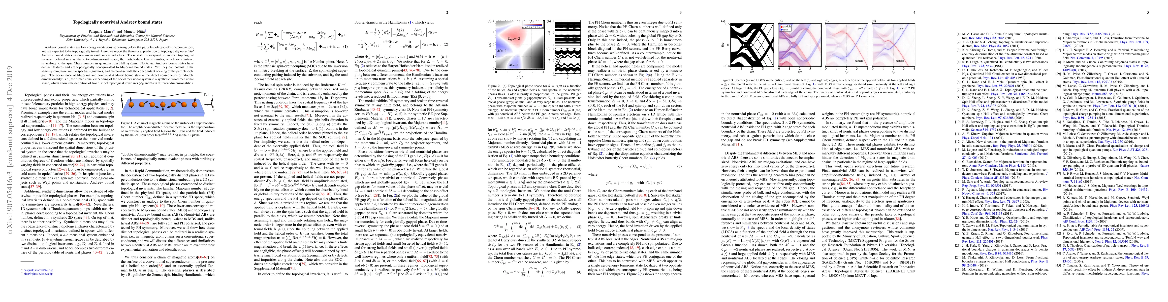 This paper theoretically predicts topologically nontrivial Andreev bound states in one-dimensional superconductors, characterized by a synthetic two-dimensional particle-hole Chern number, distinct from Majorana states but coexisting due to "double dimensionality." These states share spectral signatures and emerge with the opening of the particle-hole gap.