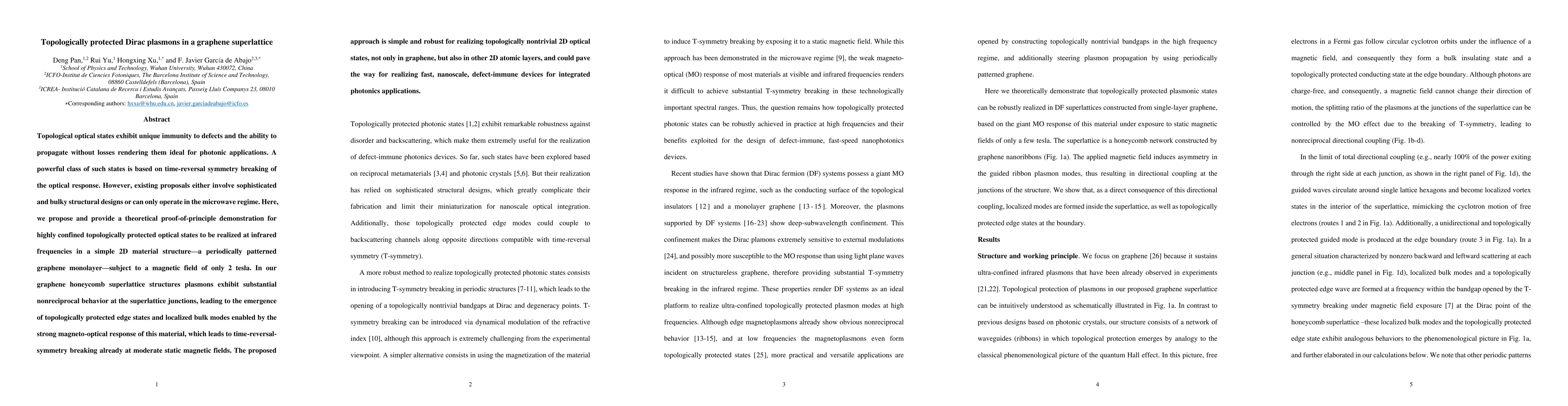 This paper proposes a simple, 2D graphene structure that realizes topologically protected Dirac plasmons at infrared frequencies, utilizing its strong magneto-optical response and periodic patterning to create defect-immune optical states ideal for photonic applications. The approach is versatile and could enable nanoscale, fast photonic devices.