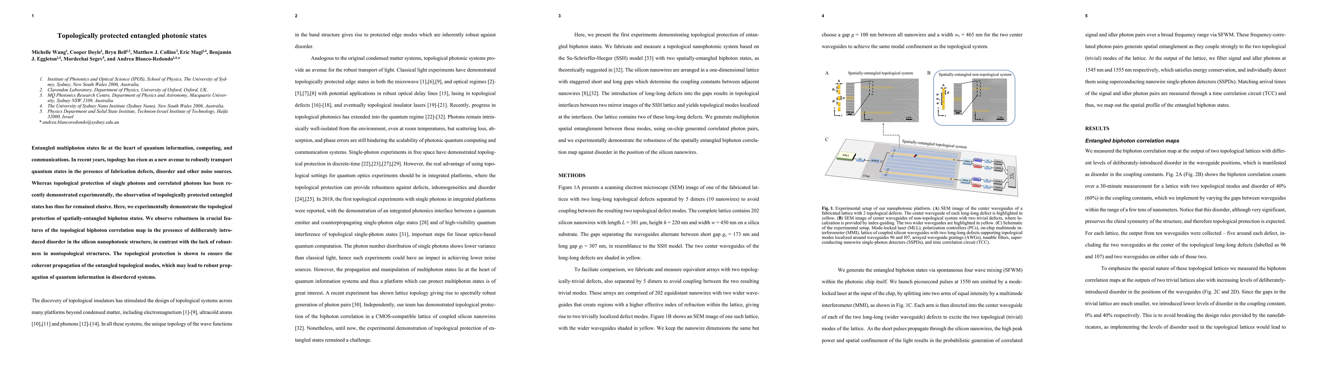 This paper experimentally demonstrates the topological protection of spatially-entangled biphoton states, showing robustness in their correlation map against disorder in silicon nanophotonic structures. This protection ensures coherent propagation of entangled topological modes, potentially enabling robust quantum information transport in noisy environments.