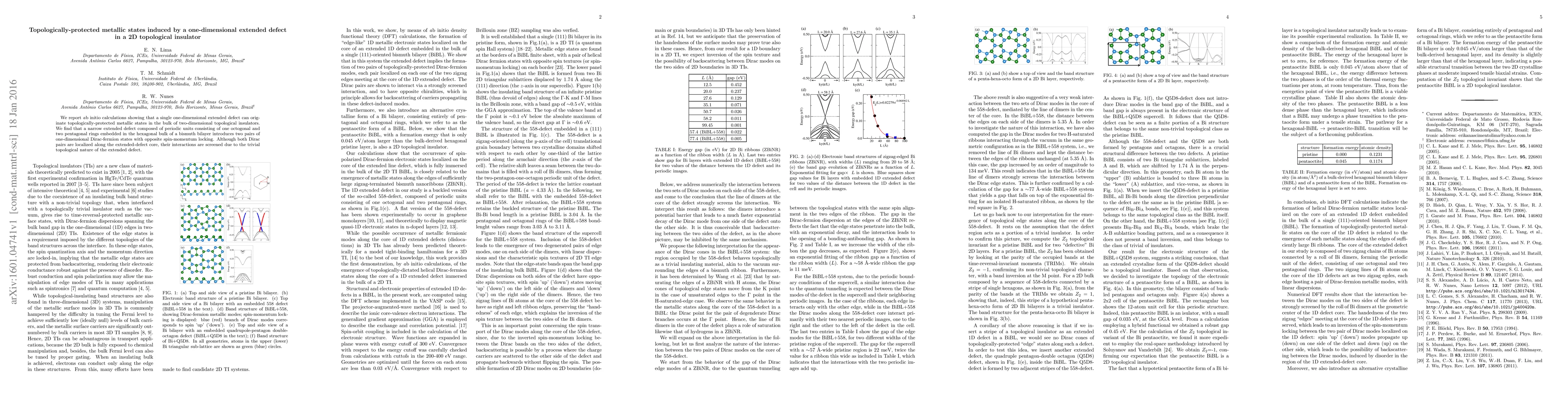 This paper demonstrates that a one-dimensional extended defect in a 2D topological insulator can induce topologically-protected metallic states, specifically two pairs of one-dimensional Dirac-fermion states with spin-momentum locking, despite the defect's trivial topological nature.