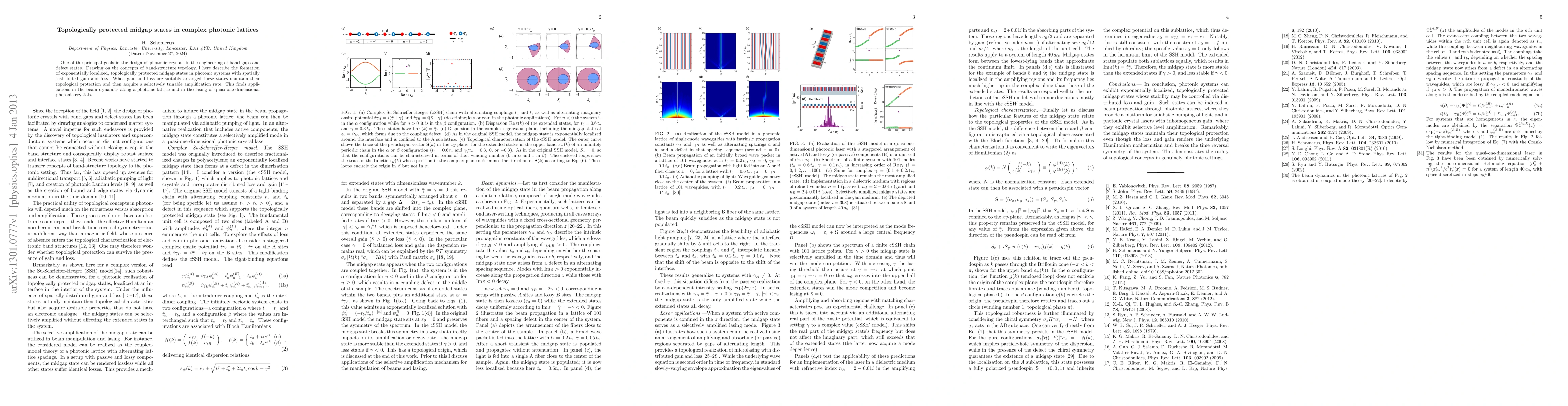 This paper explores the creation of topologically protected midgap states in photonic crystals, demonstrating their localization and tunable amplification through strategically placed gain and loss, with implications for beam dynamics and quasi-one-dimensional photonic crystal lasing.