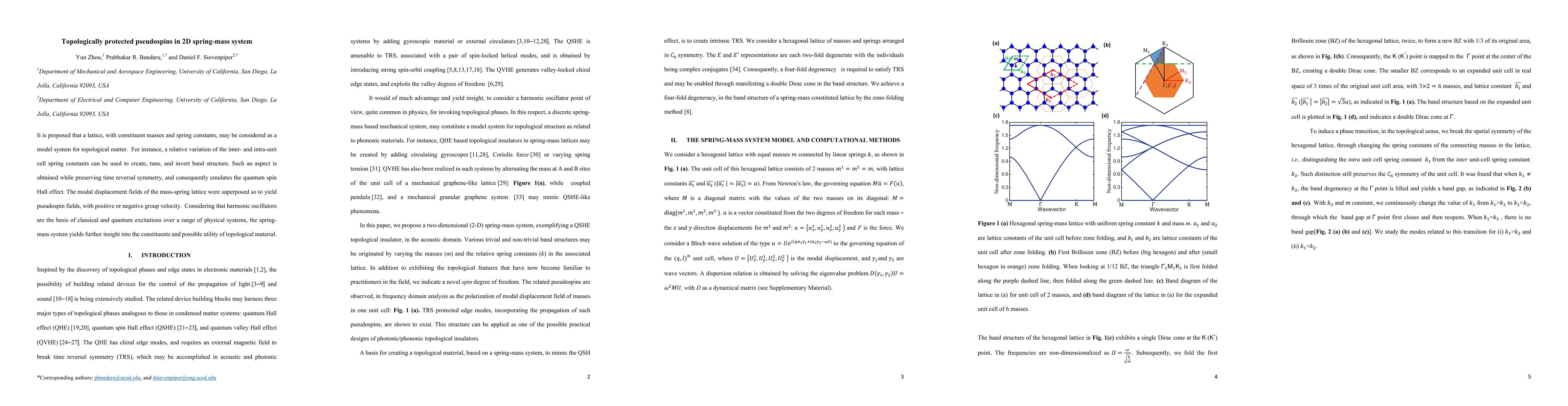This paper proposes a 2D spring-mass system as a model for topological matter, demonstrating how varying spring constants can emulate the quantum spin Hall effect while preserving time reversal symmetry. The study reveals pseudospin fields with tunable group velocities, offering insights into the nature and potential applications of topological materials.