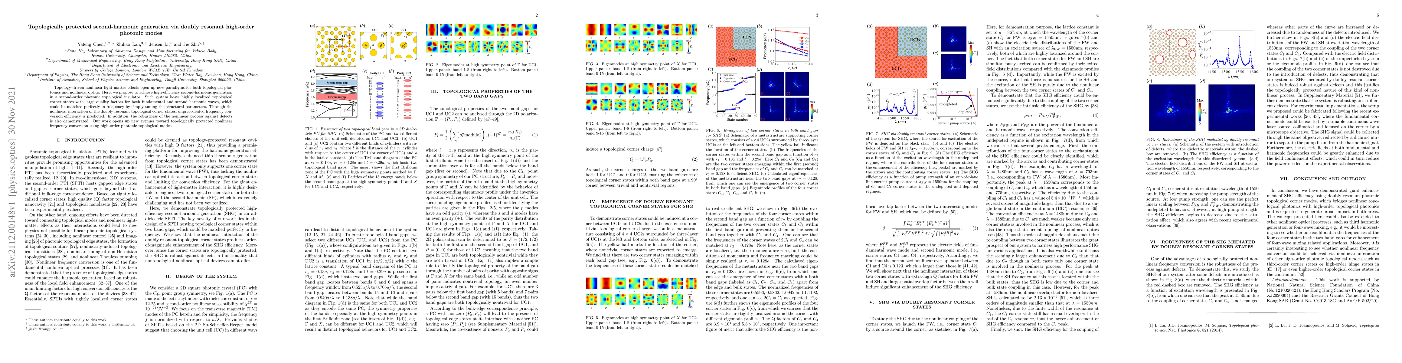 This paper proposes a method for high-efficiency second-harmonic generation using doubly resonant high-order photonic modes in a topological insulator, achieving unprecedented frequency conversion efficiency and robustness against defects. The study highlights the potential of topological photonics for nonlinear light-matter interactions.